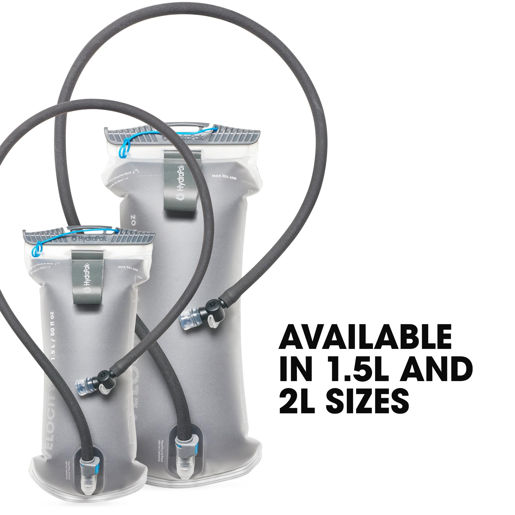 The original insulated reservoir, the Velocity IT features Isobound insulation technology, designed to keep your water colder longer. Designed to be more comfortable in vests and packs, it is ideal for runners and bikers. It features a narrow profile and soft grab tab for fast loading and unloading. Each reservoir kit includes: Velocity Insulated Reservoir 36” HydraFusion Insulated Drink Tube High Flow Comet Bite Valve Plug-N-Play® connect system to easily disconnect the drink tube from the reservoir for easy filling Basic care and use instructions Product Weights and Dims: Velocity 1.5L Capacity: 1.5L / 50 fl oz Weight: 169 g / 6.0 oz Dimensions: 344 mm x 151 mm / 13.5 in x 5.9 in