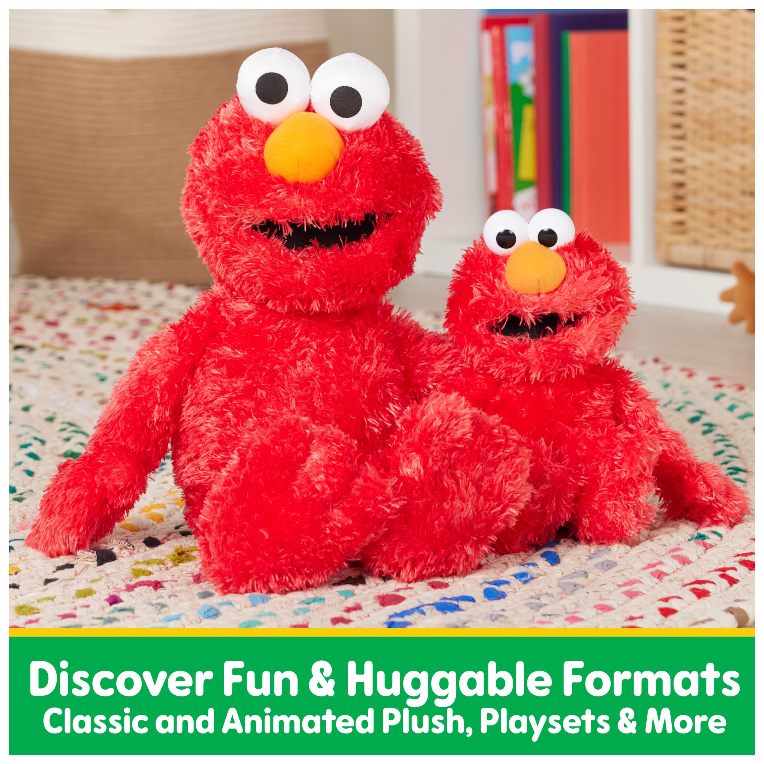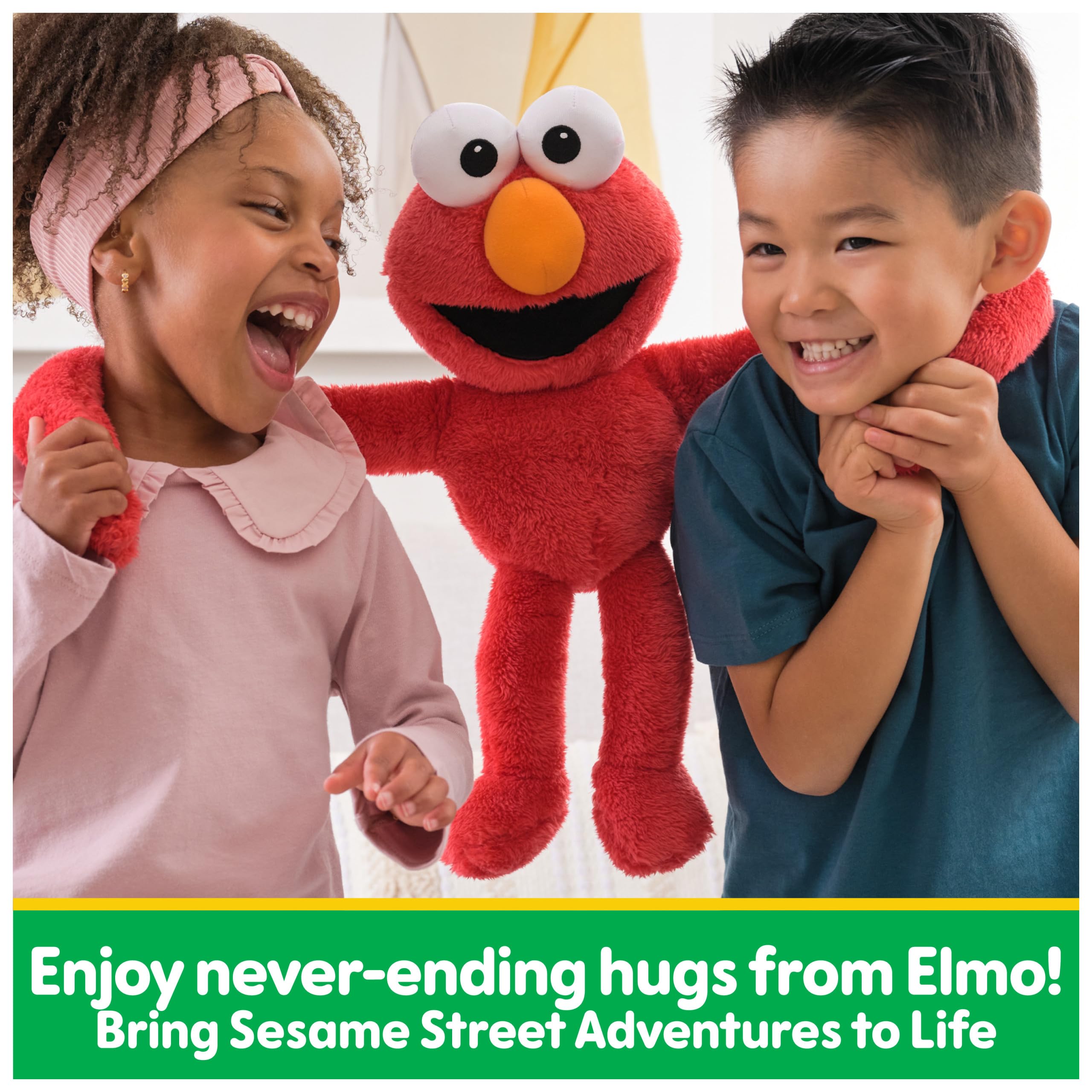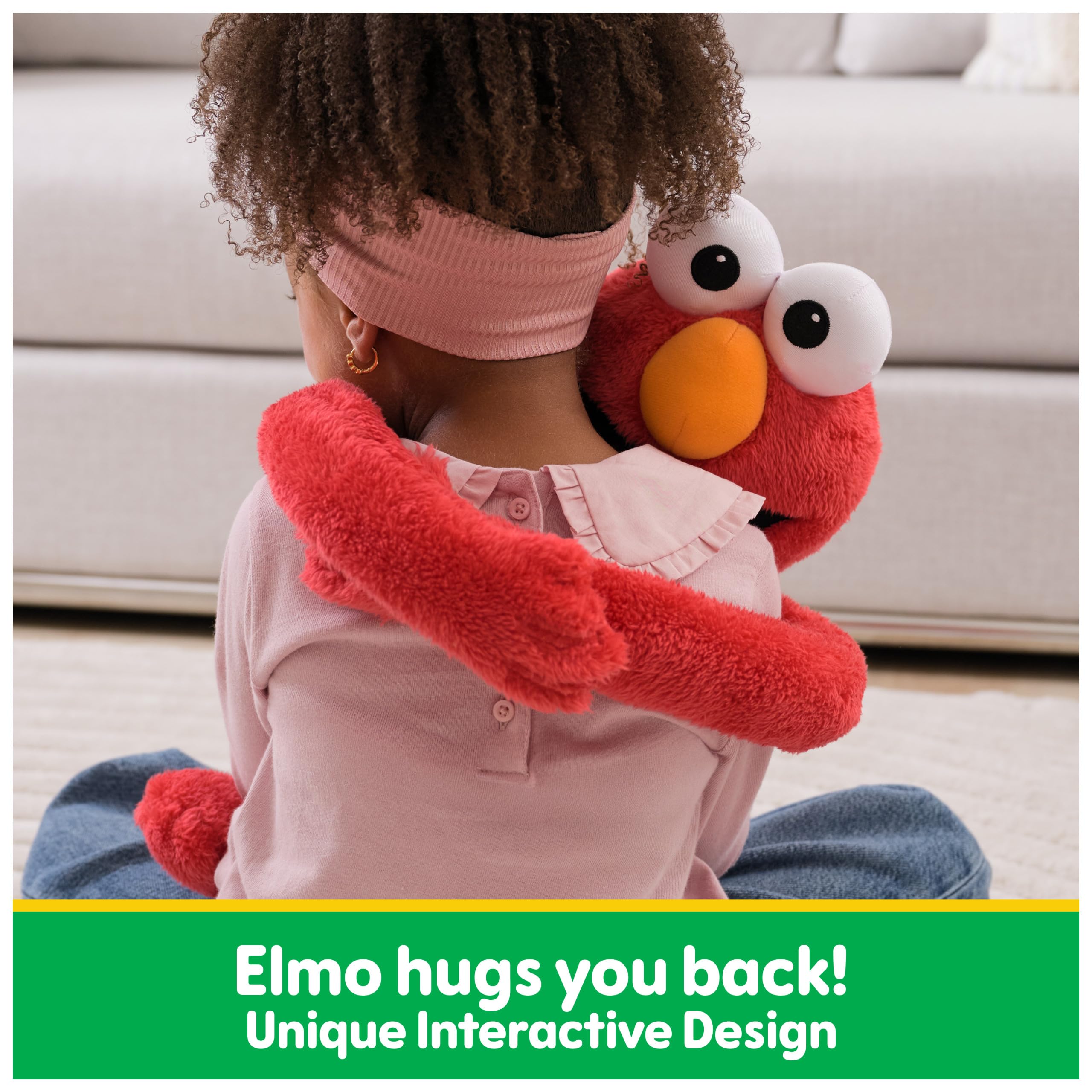 ELMO HUGGING PLUSH: Elmo is here in a soft, huggable new 14” format that hugs you back Simply press his soft plush tummy with a gentle squeeze and his extra-large arms open wide to give you a squeeze