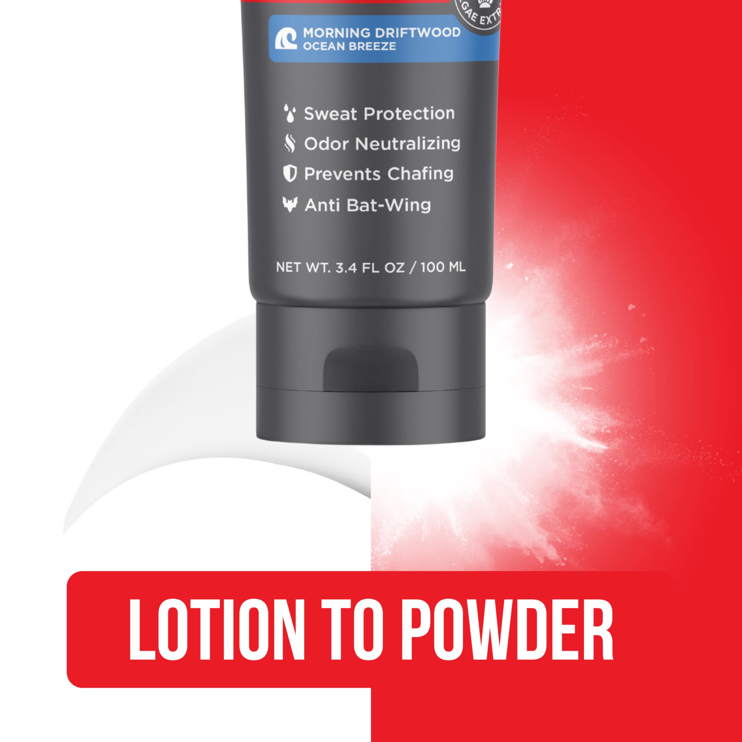 LOTION-TO-POWDER TECHNOLOGY - Comfort Cream applies as a lotion and dries to a powder, absorbing sweat and creating an anti-friction layer for long-lasting odor and sweat protection, keeping you fresh and confident throughout the day.