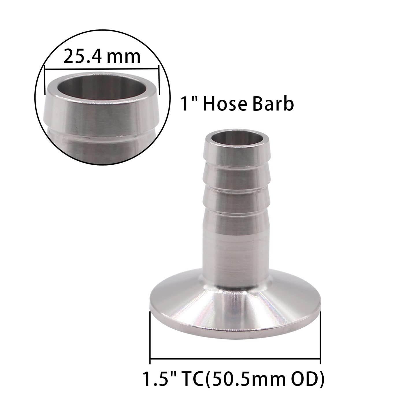 For use with rubber hoses: Barb: 1" Barb For Rubber, Plastic, TPU, or other hose