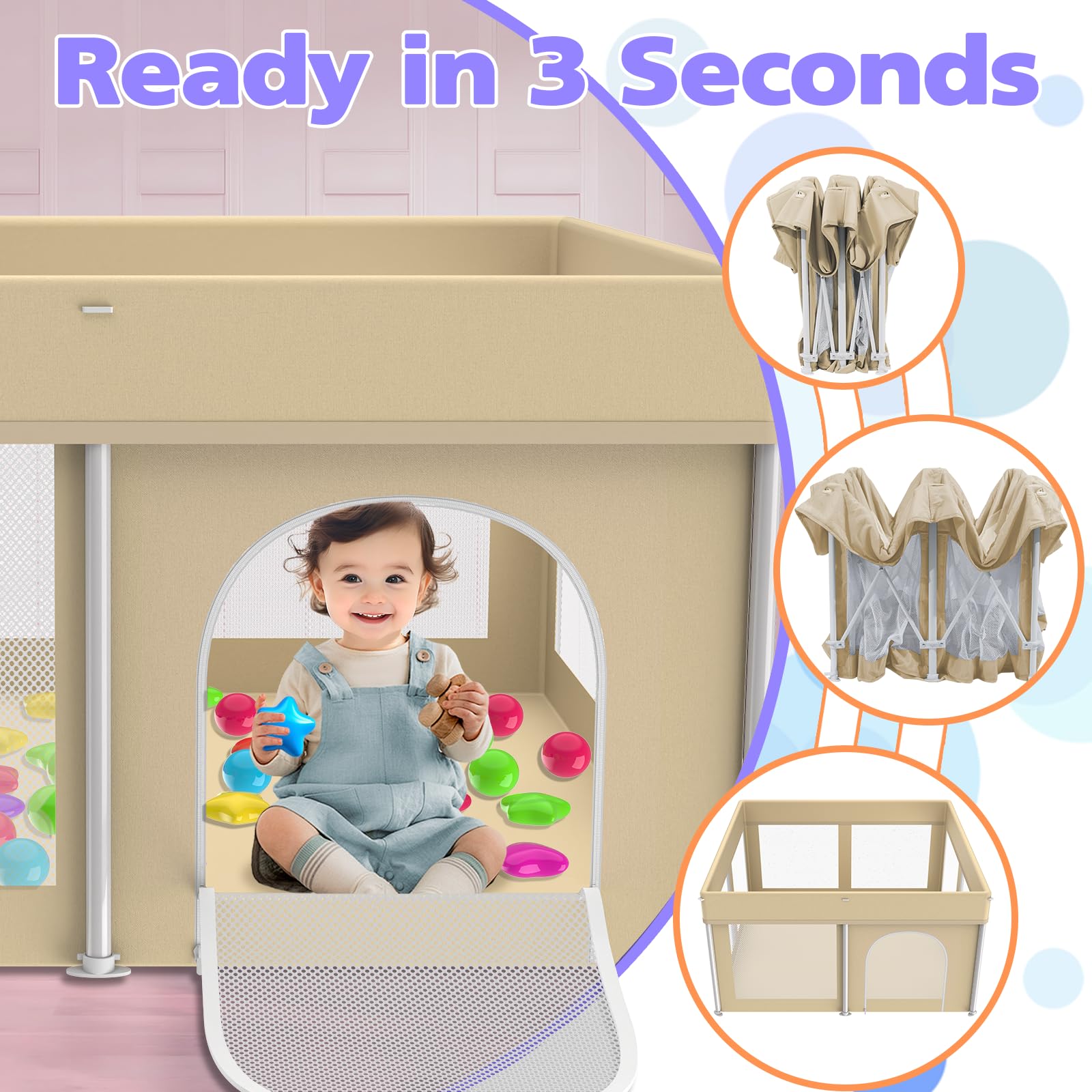No Assembly Required: Simply unfold and use! No tools or complicated installation needed, allowing parents to set up a safe play space instantly.