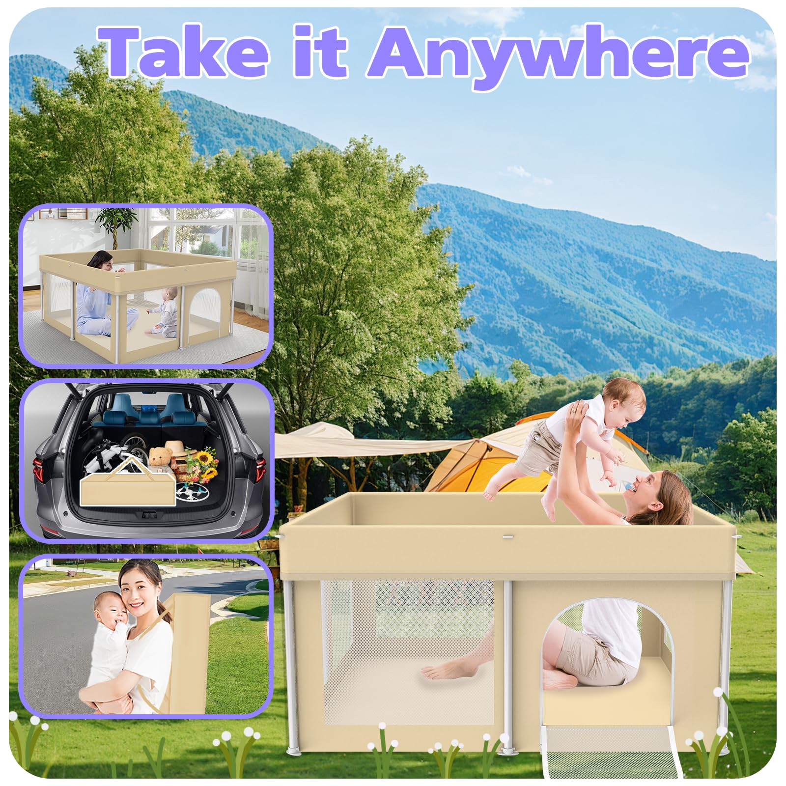 Foldable & Portable: This baby playpen easily folds into a compact size and comes with a durable carry bag, making it effortless to store and transport for both indoor and outdoor use.