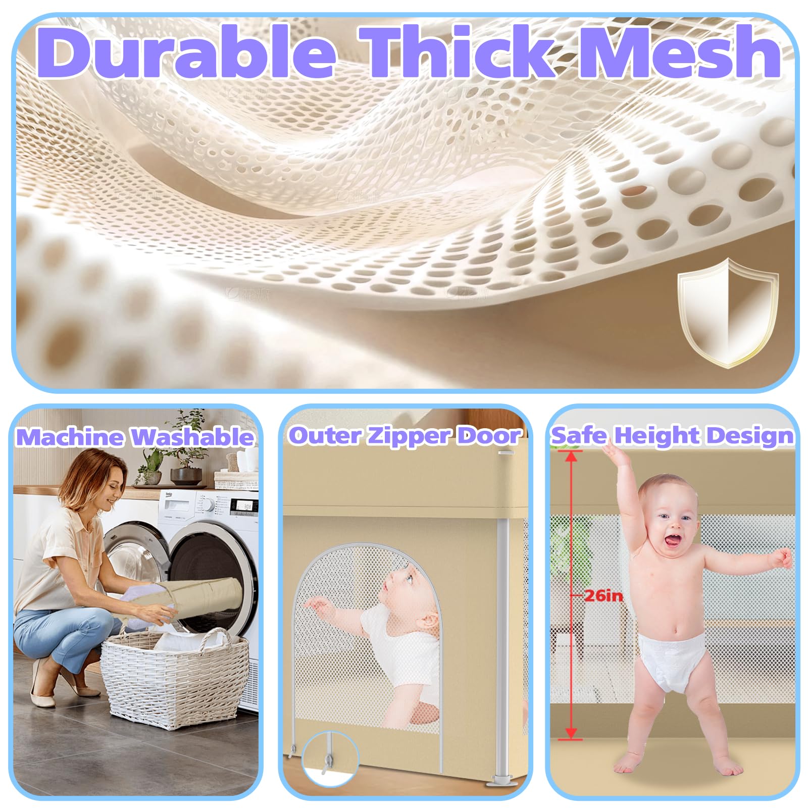 Breathable & Thick Mesh: The 360Β° thick mesh panels ensure optimal airflow, keeping your baby comfortable while allowing parents to keep an eye on them from any angle.