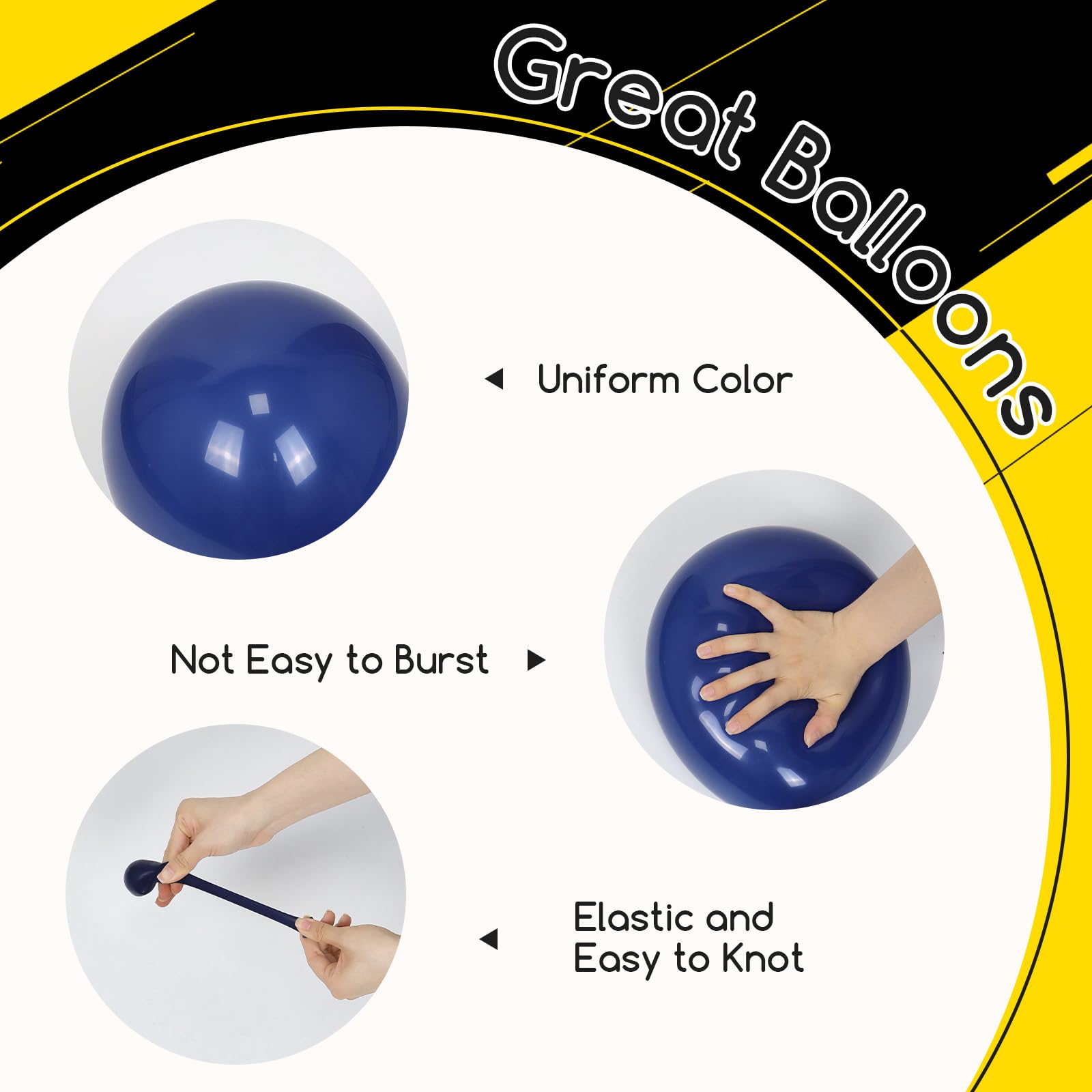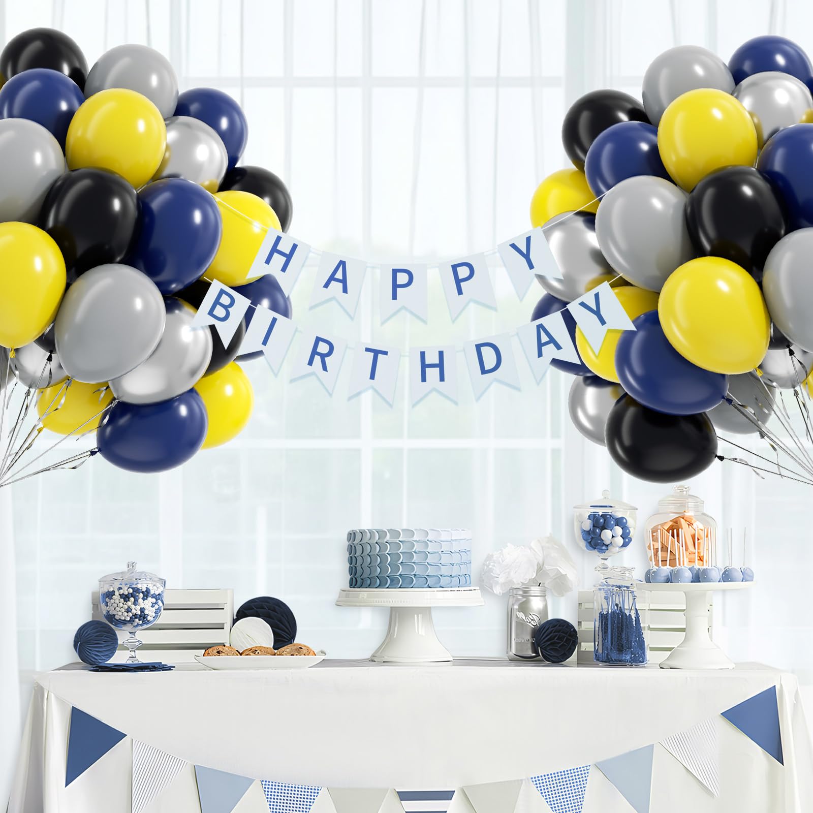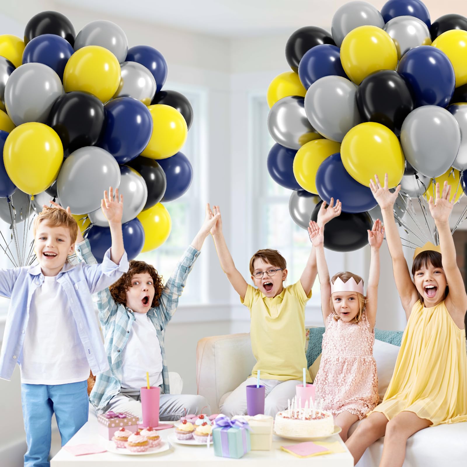 What You Will Get: The package includes 12inch navy blue balloonsx15, 12inch yellow balloonsx15, 12inch gray balloonsx10, 12inch black balloonsx10, 10inch metallic silver balloonsx10, glue dotsx20, silver ribbonx1