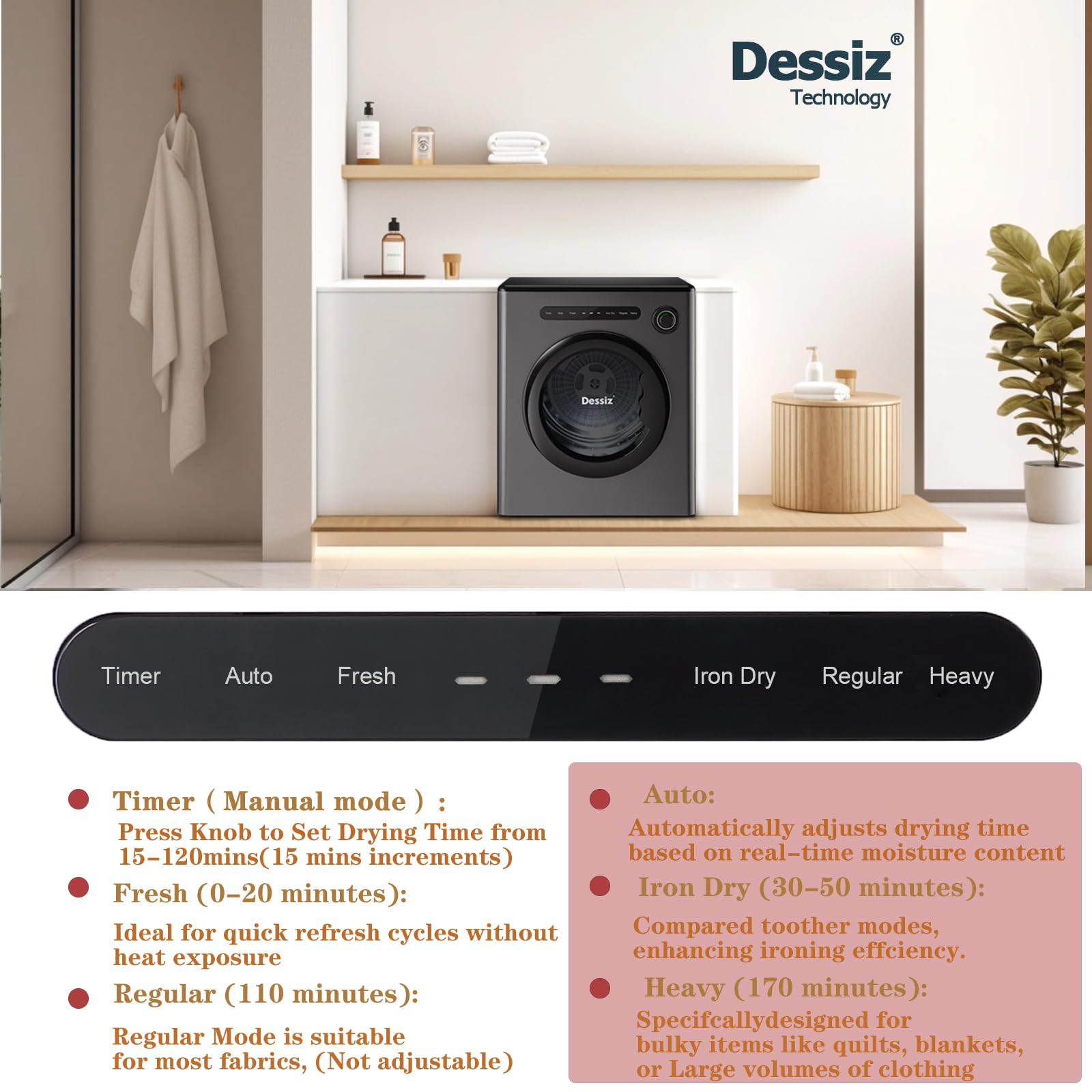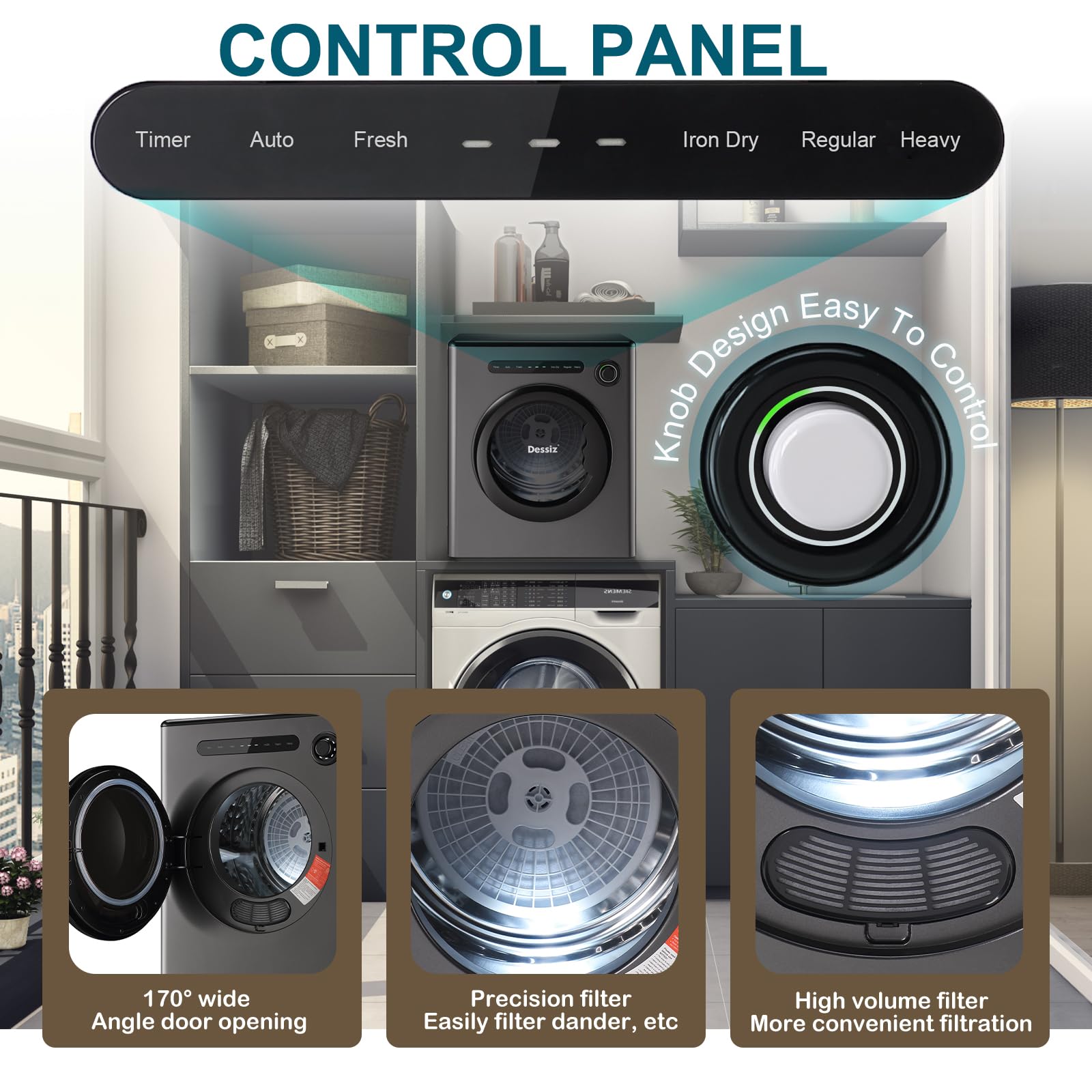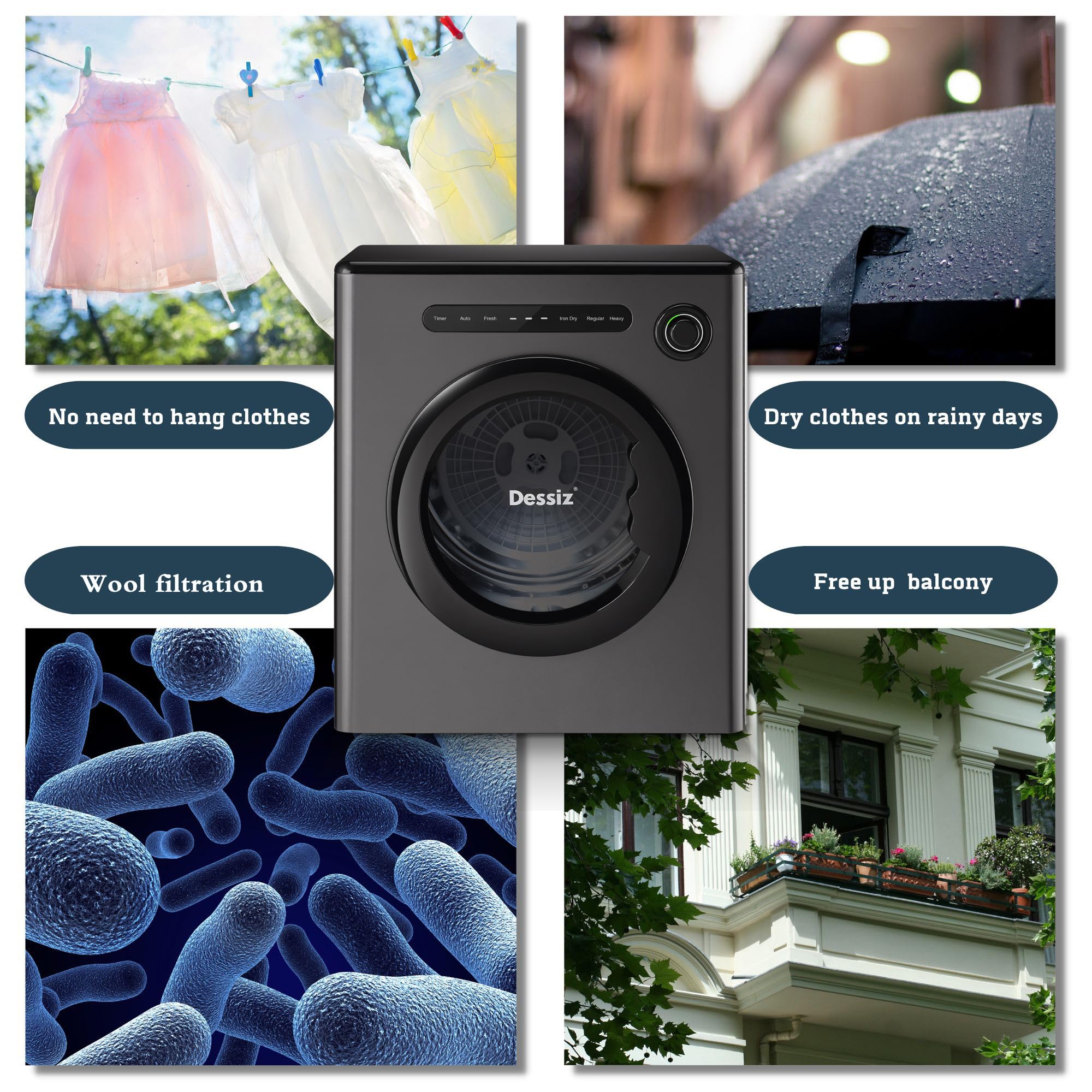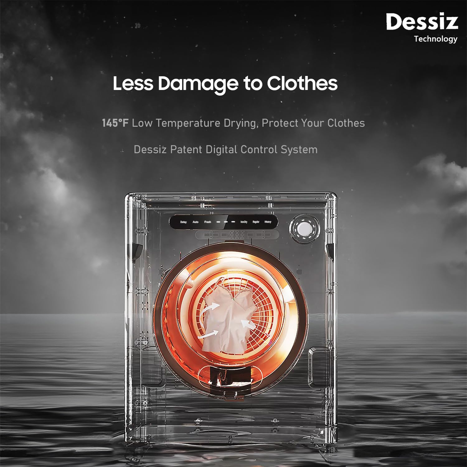 【Powerful Performance】:The Dessiz clothes dryer with 970W power and 11 pounds capacity(wet clothes), this dryer can ensure your clothes to be dry sooner. [For quickly drying clothes, we recommend not putting more than 5 kg of clothes at one time.]