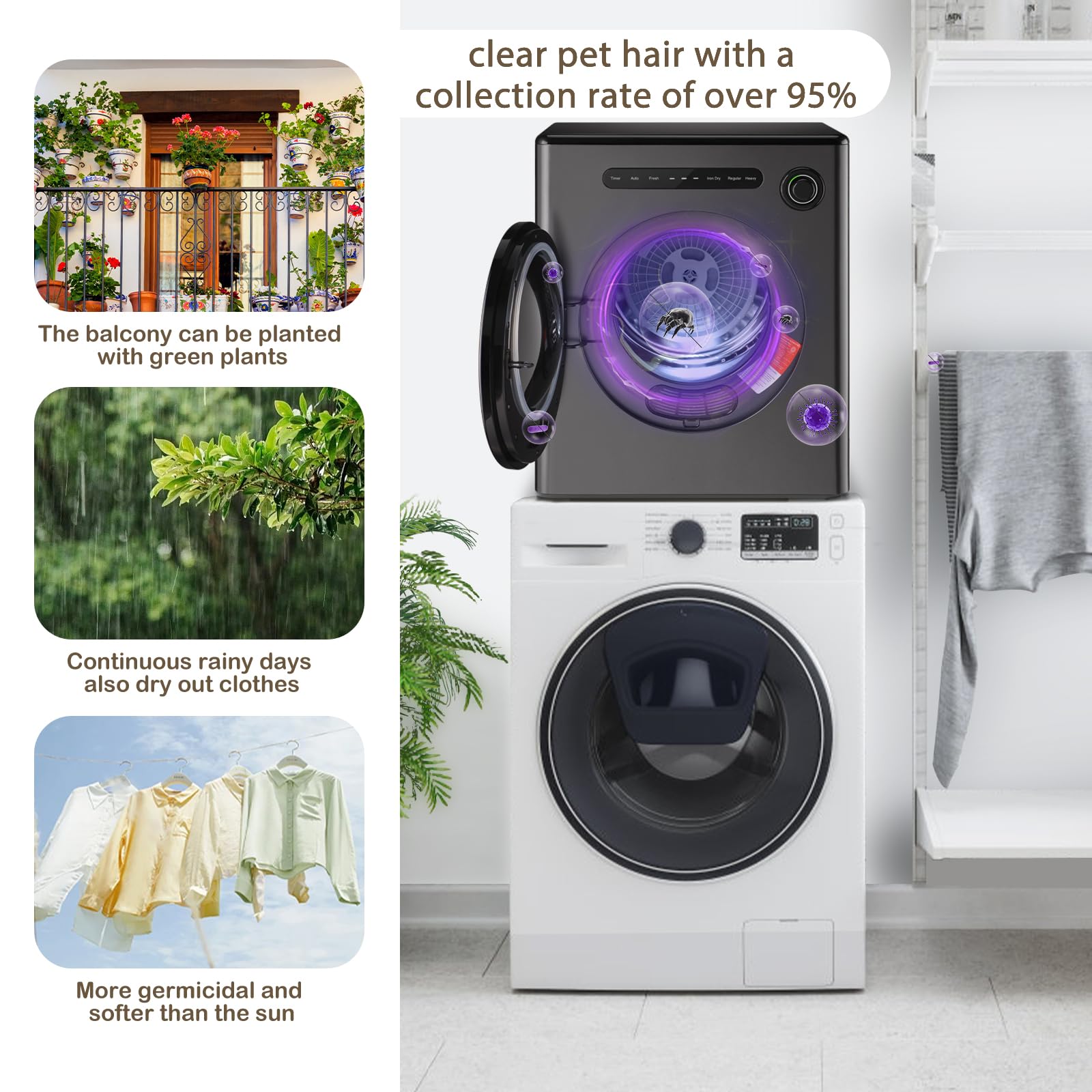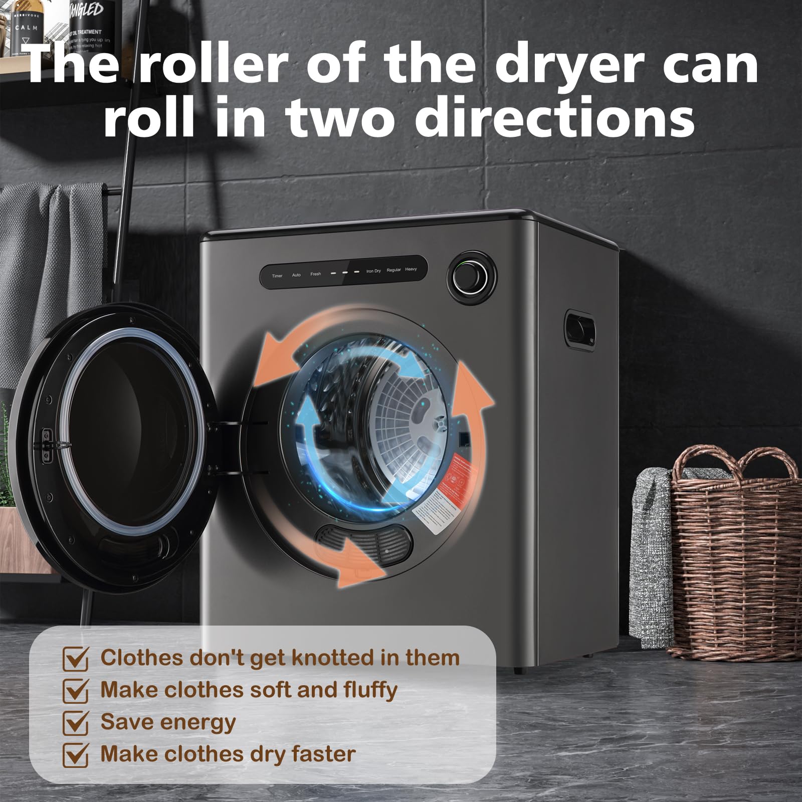 【Multifunctional Electric Dryer】:You can set different drying modes according to different fabrics and weights. FRESH (0-20 minutes): cool down, Iron Dry (30-50 minutes): dry and cool cloth, anti-wrinkle, Regular (110 minutes): mostly for clothing that does not wrinkle, Heavy (more than110 minutes) for drying large quantities or large items.Note: Use after dehydration for better drying effect