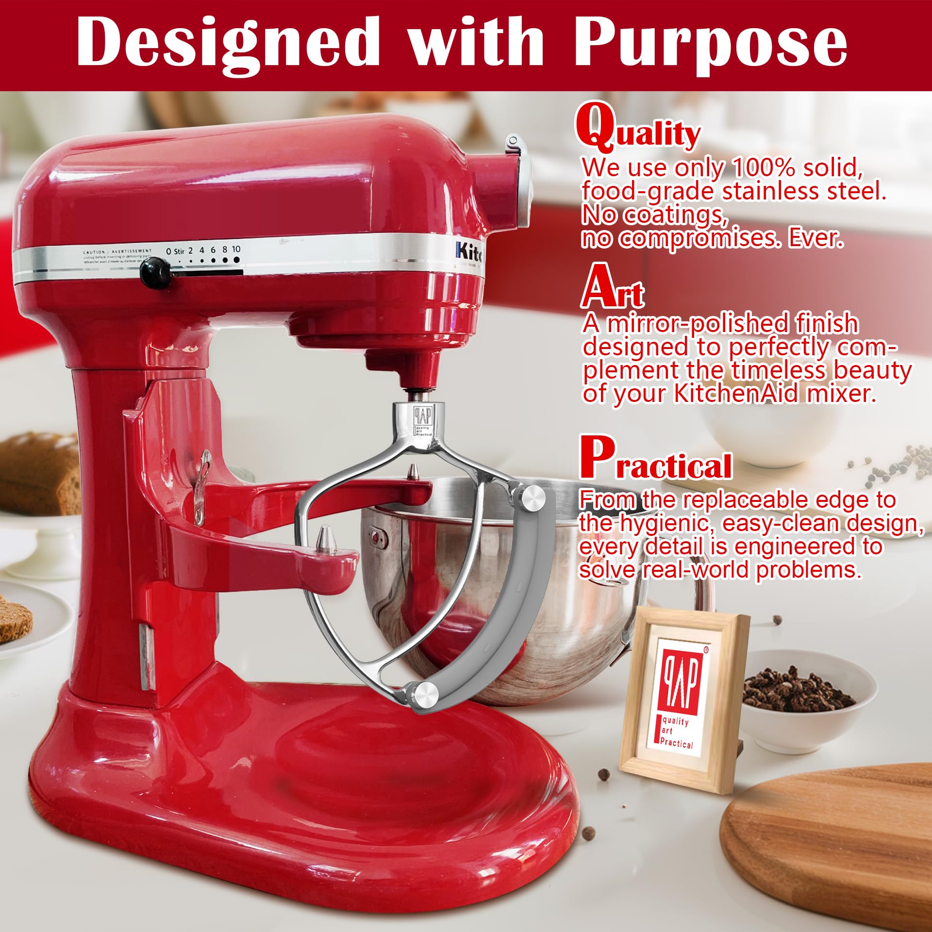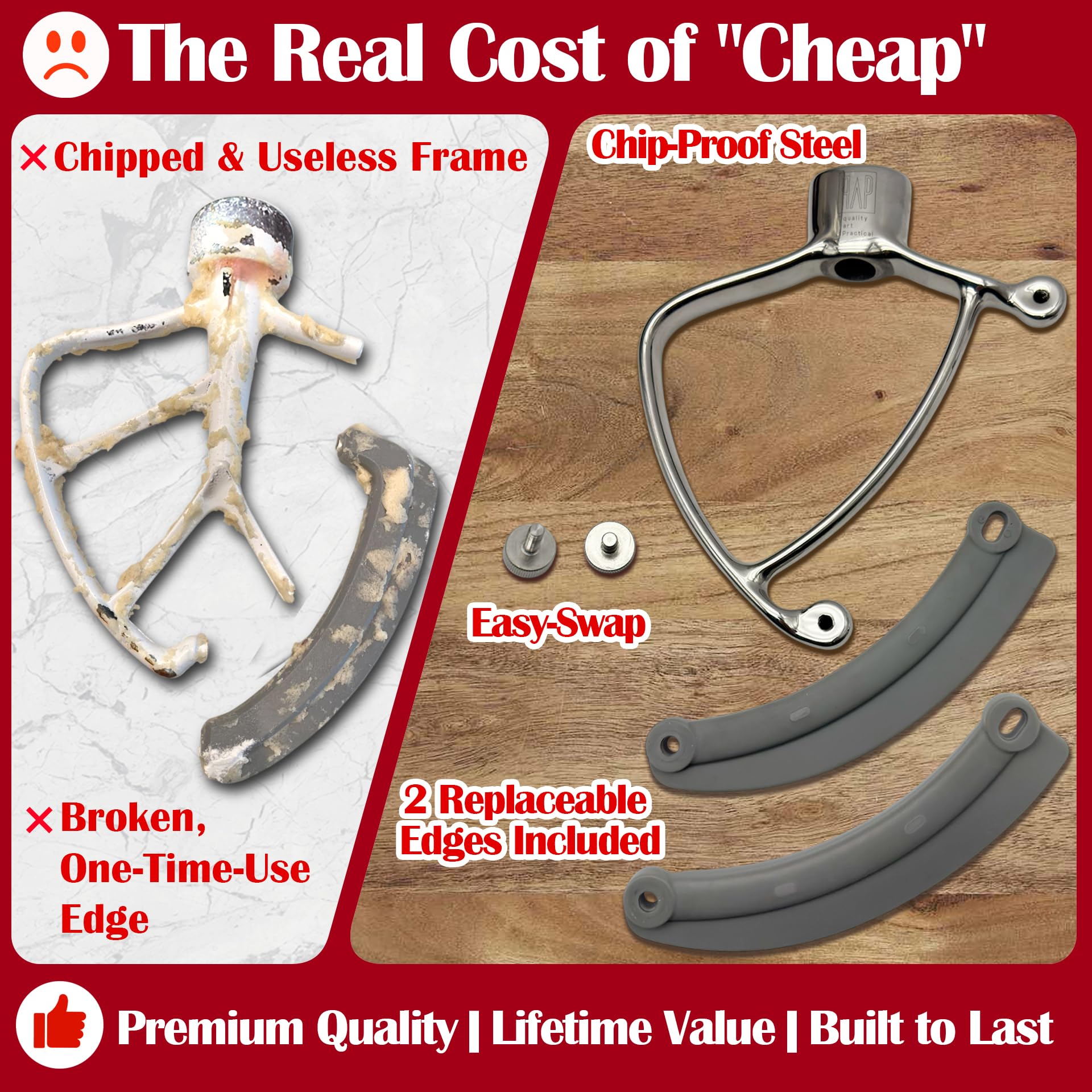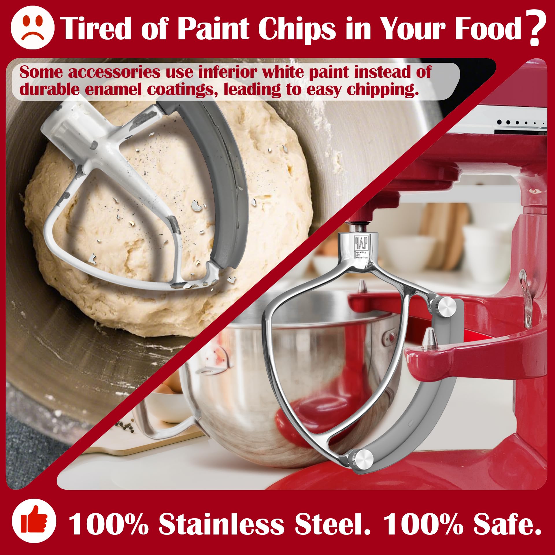 The Flex Edge Beater upgrades your Kitchen Aid 5Plus-6qt Bowl-Lift Stand Mixer (models Professional 5 Plus Series, Professional 550 Plus Series, KV25G, KV25H,KV25M, KSM55, Professional 600 Series, Pro 600 Series, Professional 6 Series, KP2671X, KP26M, KL26M, KSM60 KD2661X, KT2651X, RKSM6573, 5KSM6583, 5KSM6585G) with durable stainless steel, replaceable silicone blades, and effortless mixing for all your baking needs.