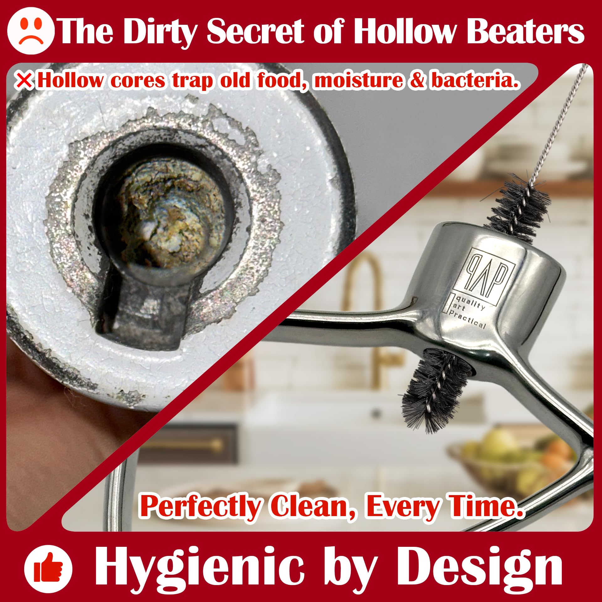 Durable polished stainless steel construction - no chipping or flaking like traditional coated beaters