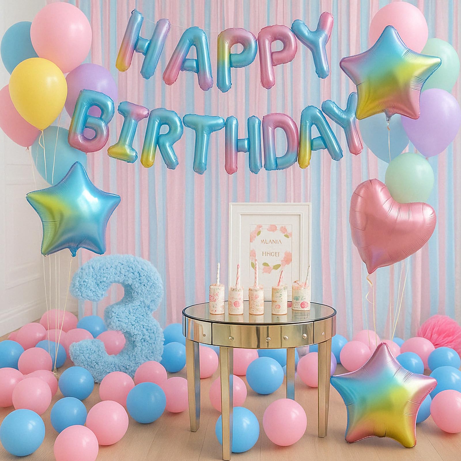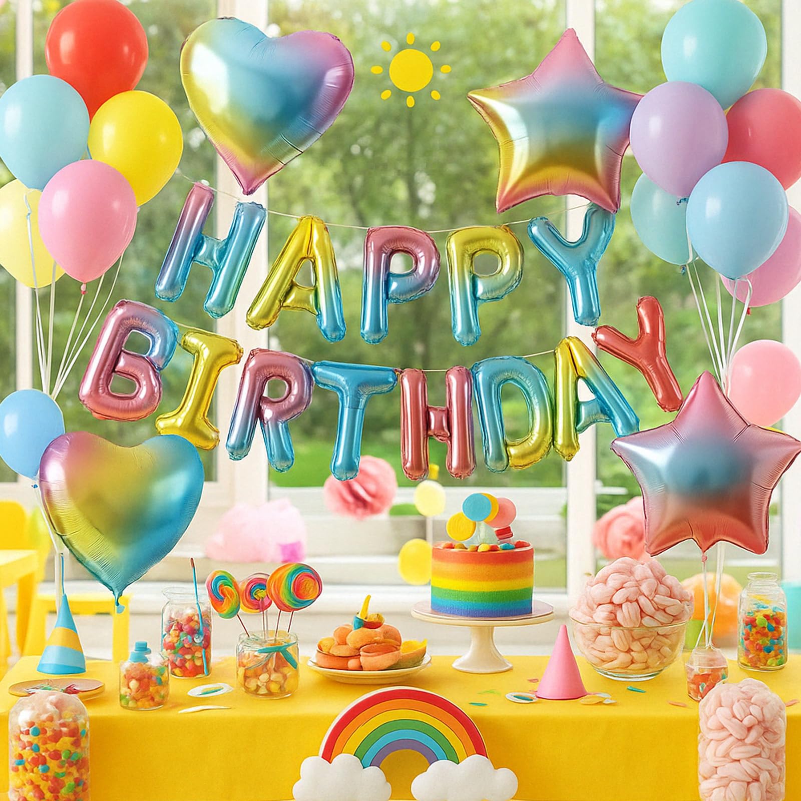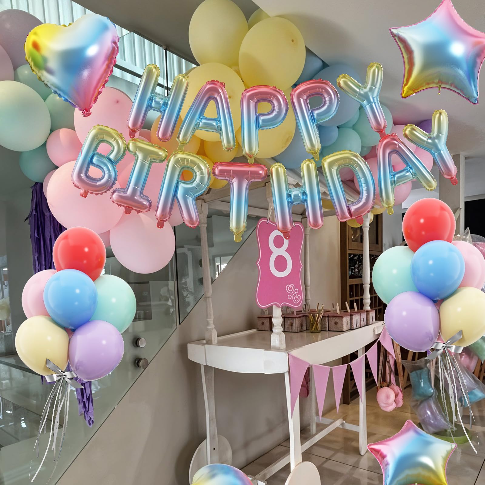 【Variety of Color Choices】Rainbow Happy Birthday Decorations include different colors of "HAPPY BIRTHDAY" foil balloons and multiple sizes and colors of latex balloons, you can easily mix and match to create a personalized party atmosphere. Whether you're going for a cute, vibrant vibe or a soft, elegant look, there’s a party balloon combination for your celebration.