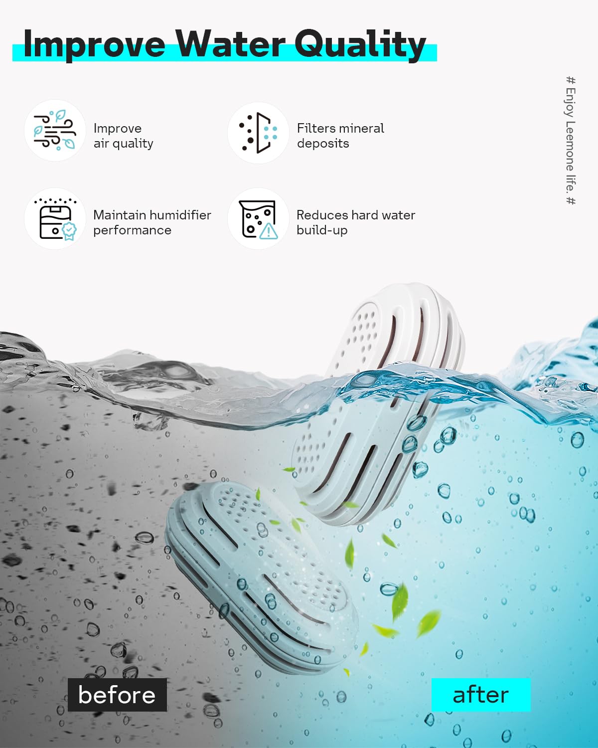 【FOCUS ON YOUR HEALTH】 ultrasonic humidifier demineralization cartridges offer soft and healthy mist by capturing minerals and irregularities from the water. Efficiently purifies the water and prevents odor emission by absorbing the calcium, lime and magnesium ions contained in hard water. Keeps your humidifier running efficiently, extending its lifespan while creating a healthier indoor air environment.