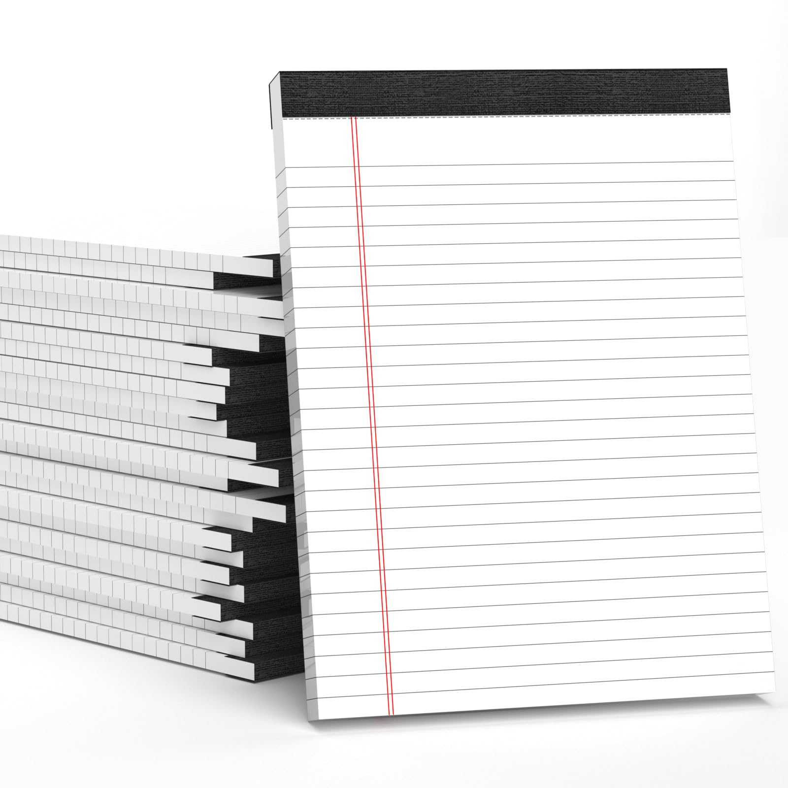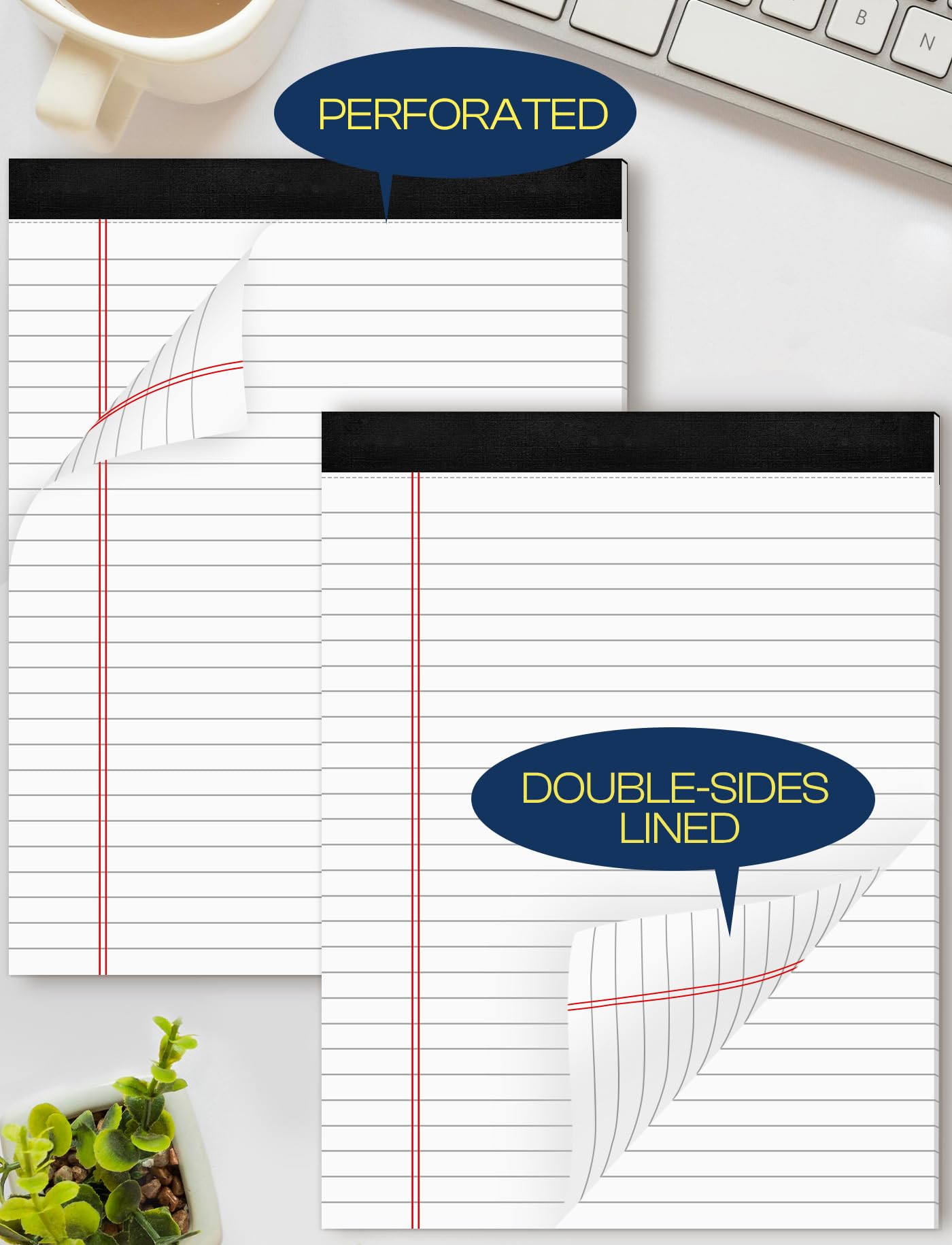 [KEEP NOTES SECURE]: Each white legal pads 8.5 x 11 wide ruled has black top bindings. The writing tablets 8.5 x 11 perforated top edge allows for easily and neatly removing individual sheet of paper. Legal pads white has sturdy and resistant bindings keep the pages of crucial notes protected, writing pad won't fall apart under pressure like some lesser notepads. Paper tablets 8-1/2 x 11 features a thick & strong cardboard backing for extra support when writing thicker than standard legal pad.
