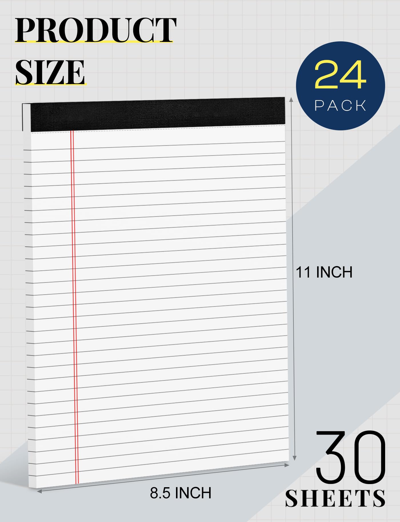 [WIDE RANGE OF APPLICATIONS]: Perforated edge white lined paper pads 8.5 x 11 for everyday writing is good for for students, teachers waitress, home, school or office, business, and more. You can use note pads 8.5 x 11 wide ruled create reminders, to do lists, notes, and more. Take your grocery list with you on the go or stash that to-do in your pocket. There are measures legal note pads 8.5 x 11, 24pcs in a pack and 30 sheet per notepad, so you always have one available when it's needed.
