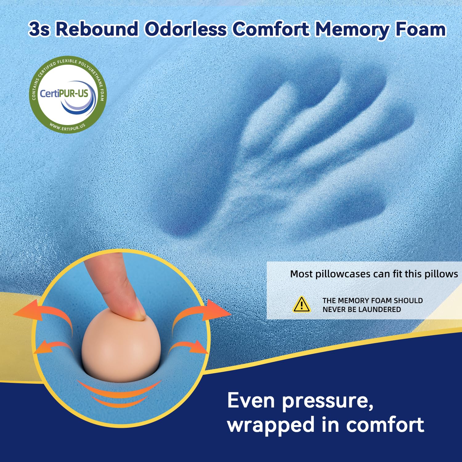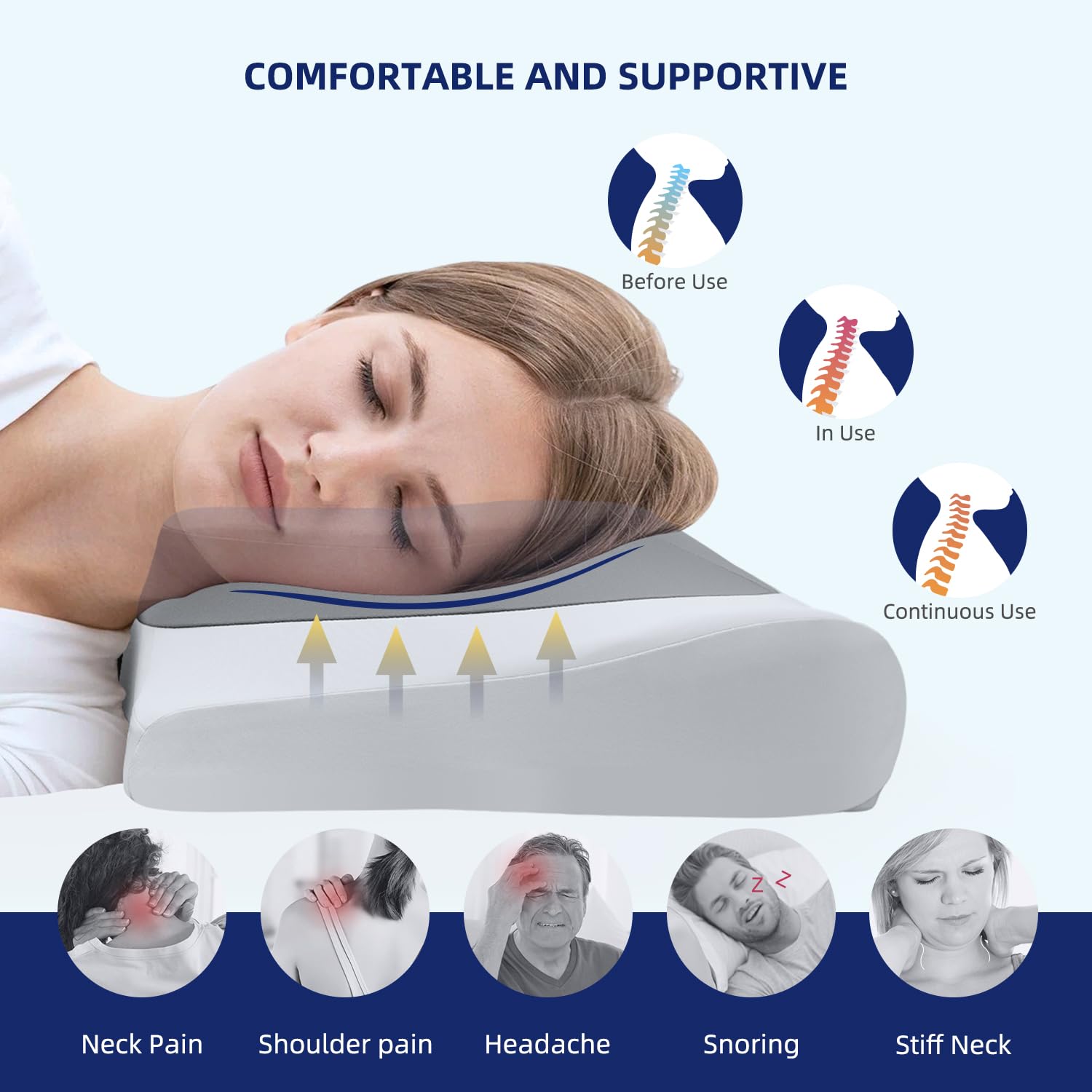 2.Slow Rebound Memory Foam: Unique non-toxic, non-allergenic molded foam design. The memory foam neck support pillow is made of premium rebound memory foam certified in the CertiPUR-US and Climate Pledge-Friendly to provide firm support and amazing comfort and softness while you sleep. In addition, it slowly rebounds to its shape within seconds and maintains its shape and firmness over long periods of use.
