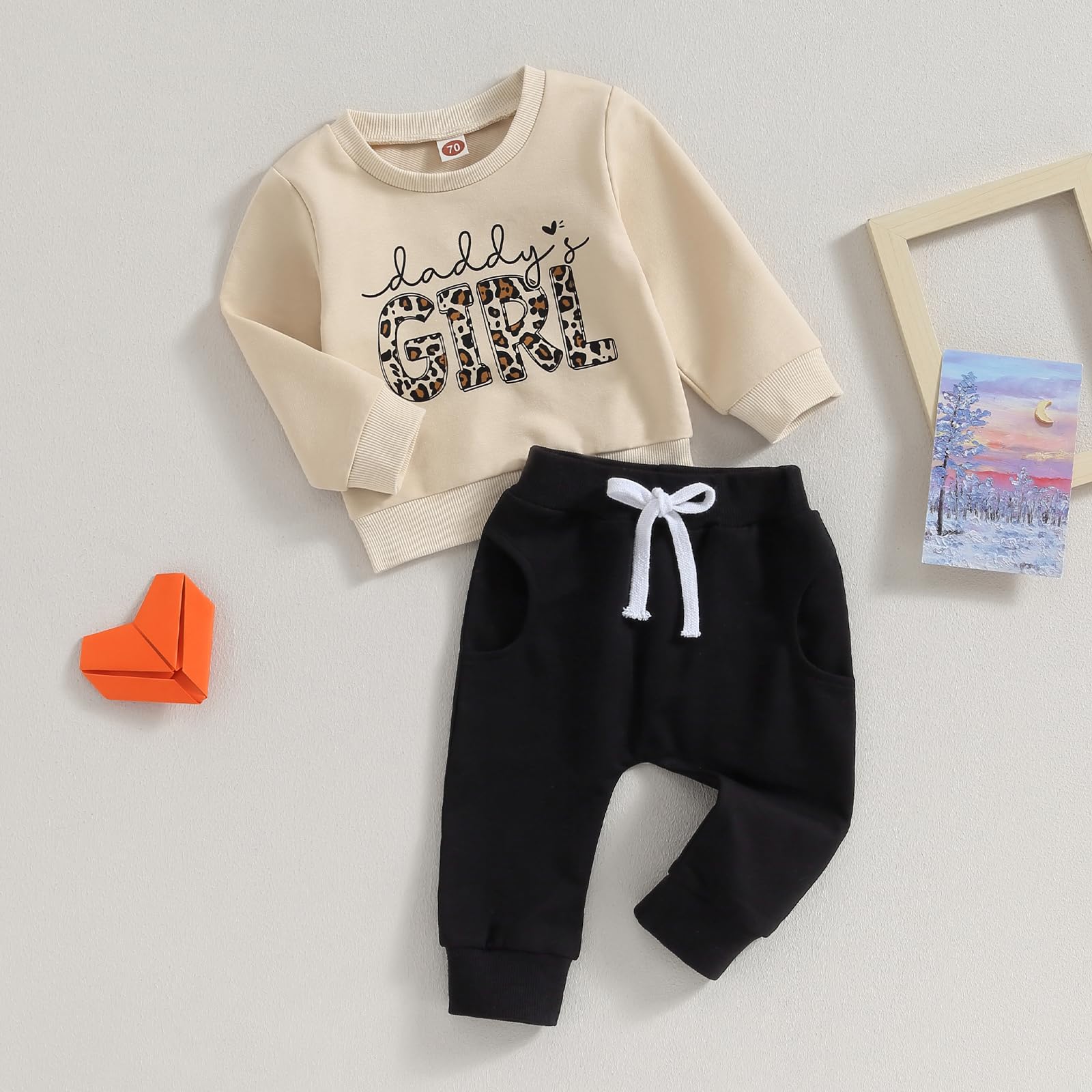 Feature: Toddler baby girl fall clothes, letter print, long sleeve sweatshirt tops, elastic waist pants, this will make your little baby more adorable and attractive.