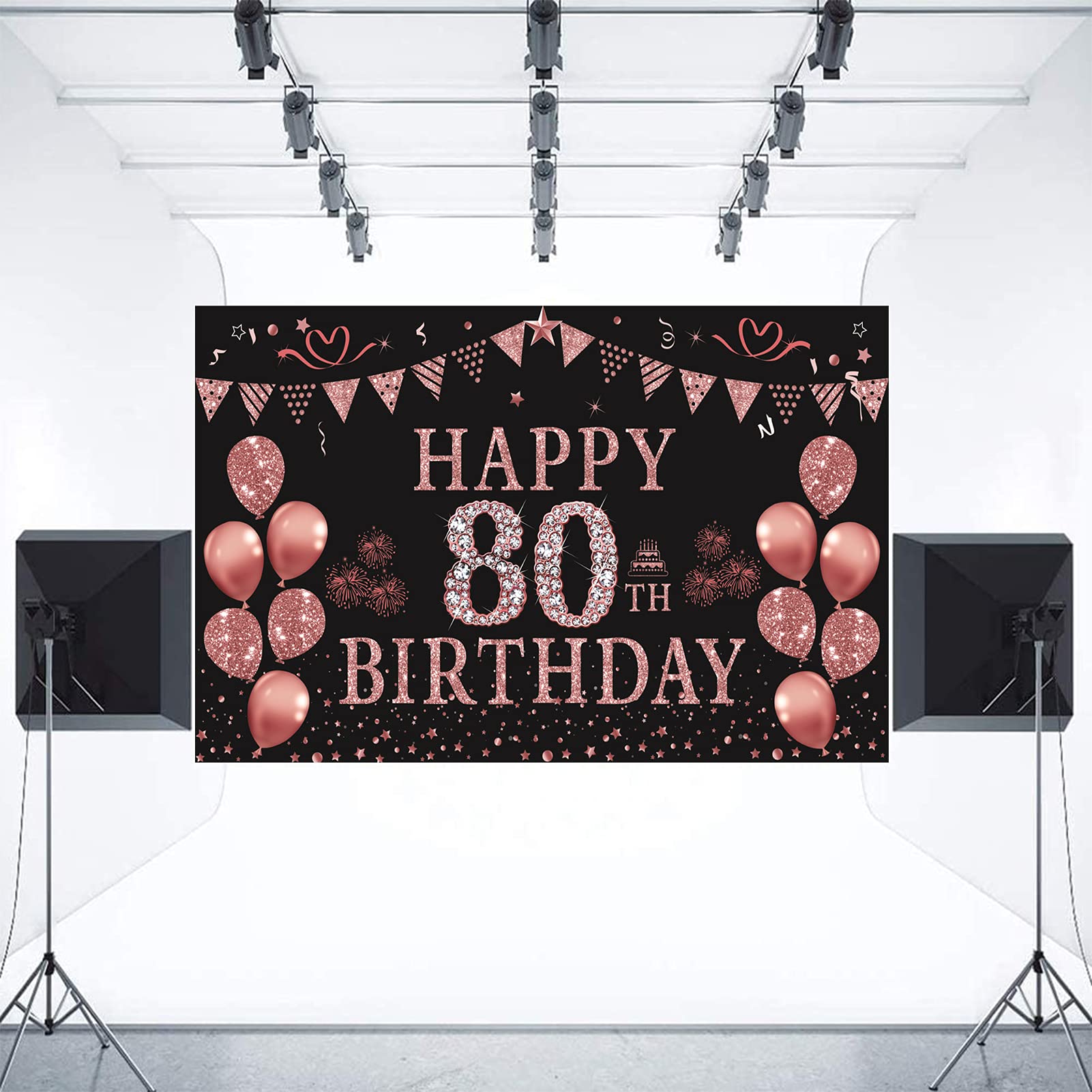[Various Applications] - The Rose Gold birthday party backdrop is suitable for 80th birthday party banner decoration. It also can be used as wallpaper, curtain, backdrop for photo.