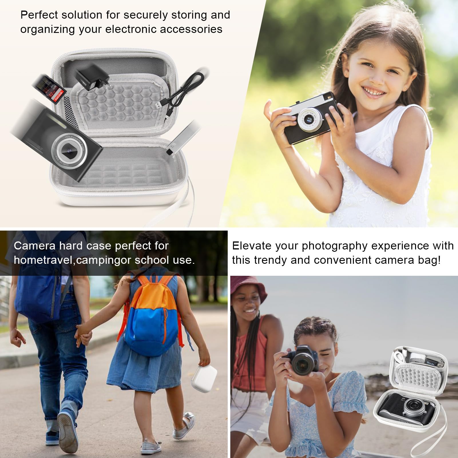 Lightweight, Hard and Skid-proof Case: The digital camera case features a rugged EVA shell for waterproof, shockproof, and pressure-resistant protection. The camera pouch is not only easy to store video camera indoors, but also can be fully prepared for outdoor activities. Whether it's for everyday use or for travelling, it's easy for you and your child to carry the camera and enjoy shooting.