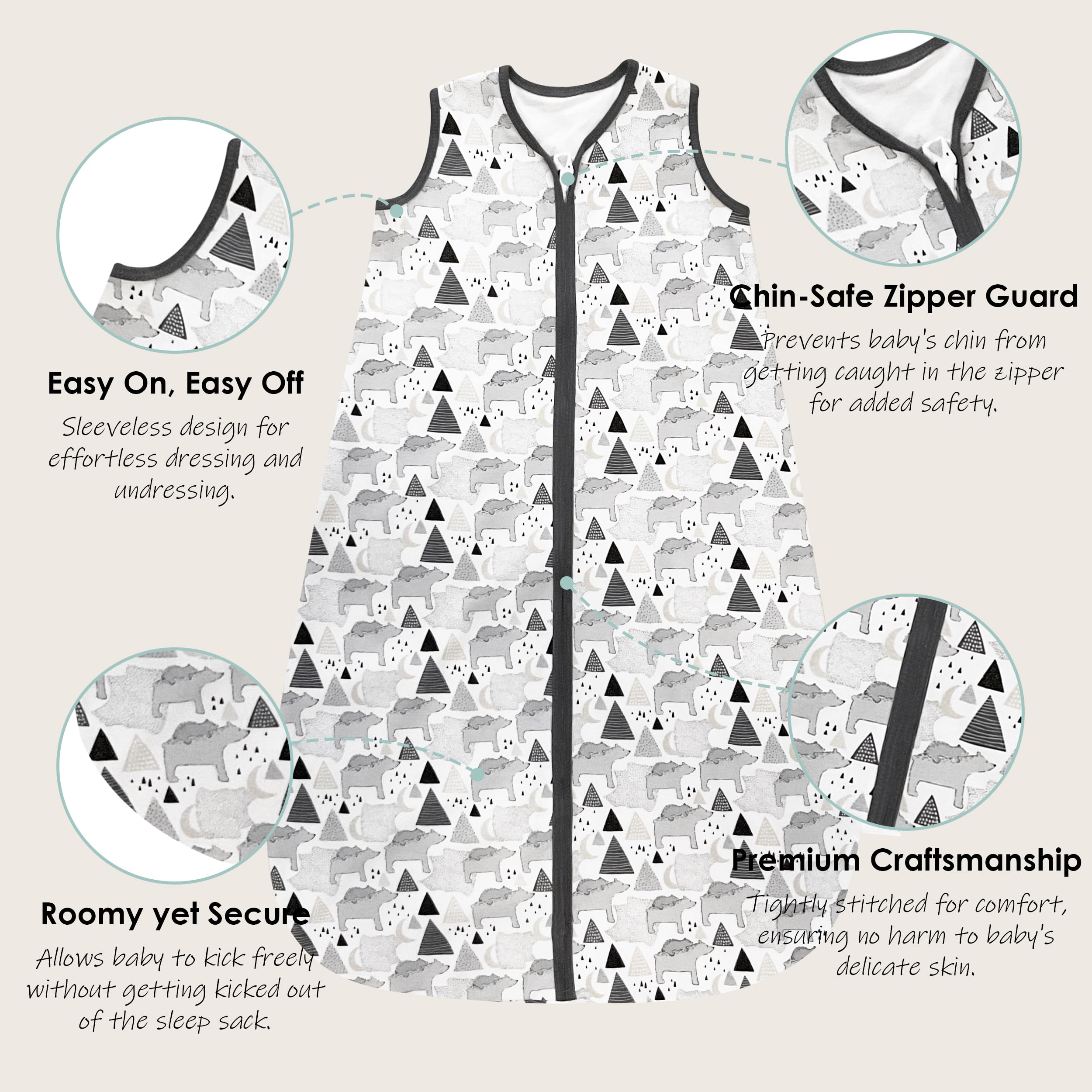 Convenient & User-Friendly: Featuring a double zipper for easy diaper changes, our sleep sacks are designed with baby's safety in mind. With zipper guards and covers, they provide added protection for your little one's delicate skin. Plus, they are a breeze to care for with machine wash and tumble dry capabilities