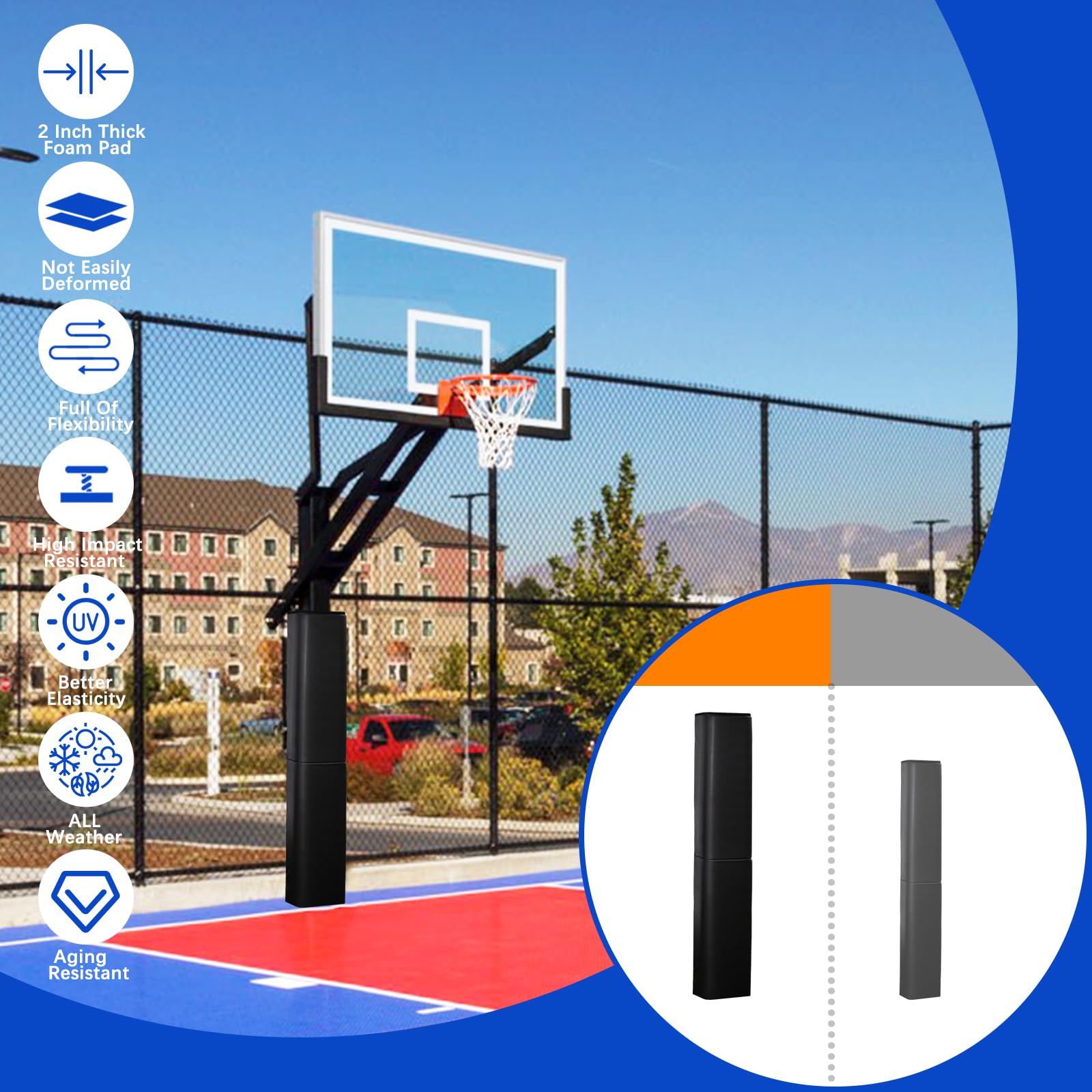 đăAll-round ProtectionăFour inch thickness heavy-duty basketball goal pad basketball pole pad Outdoor offers comprehensive protection against pole impact, provides playerâs protection and safety for aggressive and rough play.VANCL basketball pole padding is designed to provide player protection and safety.