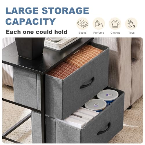 【Compact Size & Durable】This nightstand is ideal for small rooms such as apartments, college dorms, or entryways. It maximizes storage capabilities without taking up excessive space. This allows it to serve as a mini dresser, accommodating clothes or accessories in an organized manner, making it an excellent choice for those with limited storage options. The nightstand is also designed with durability in mind. It is made from high-quality metal and fabric.