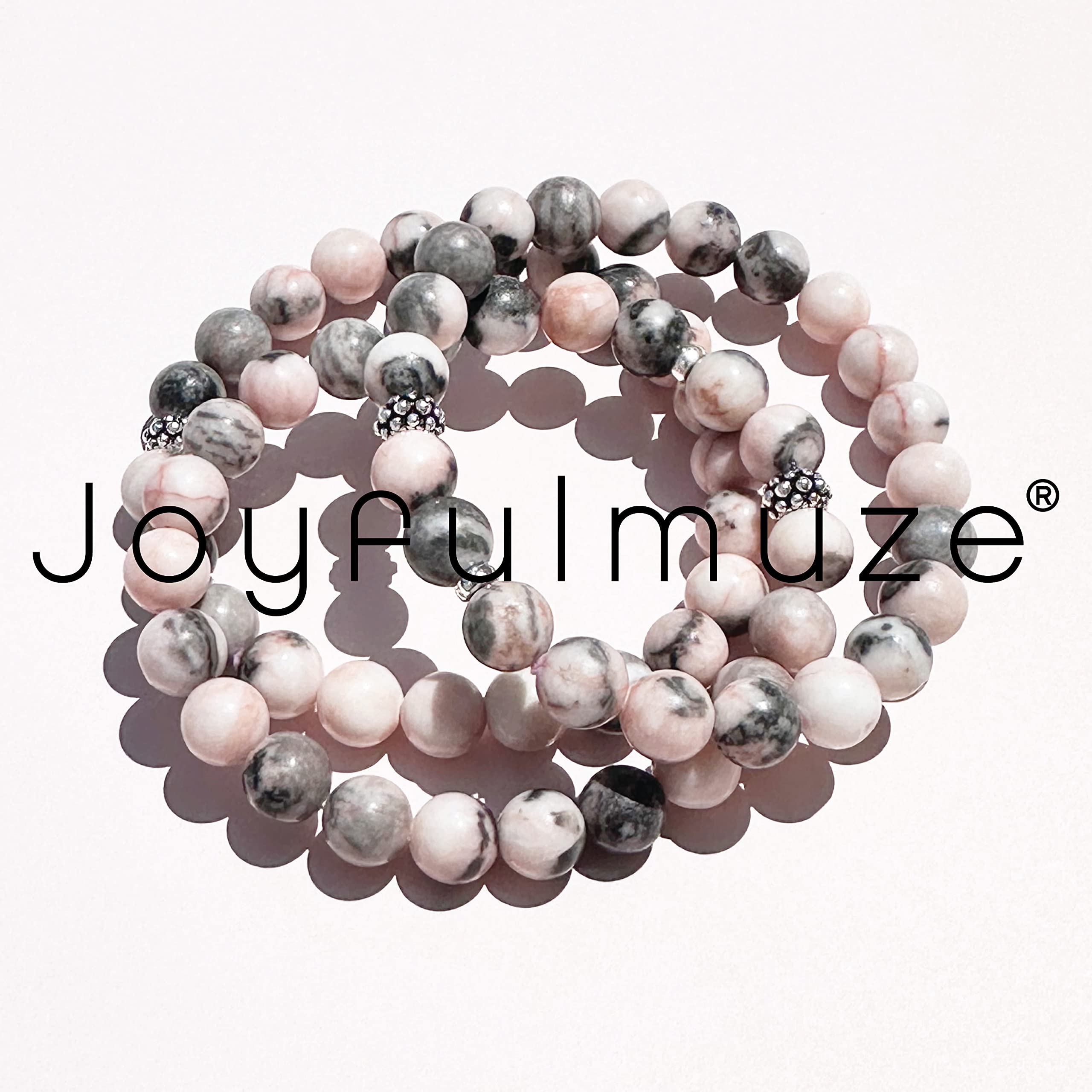 Light Pink and Black Zebra Jasper stone bracelet for a suitable fit 17cm in length. 6.5-7 inches wrist, depending on whether you prefer your bracelets snug or loose.
