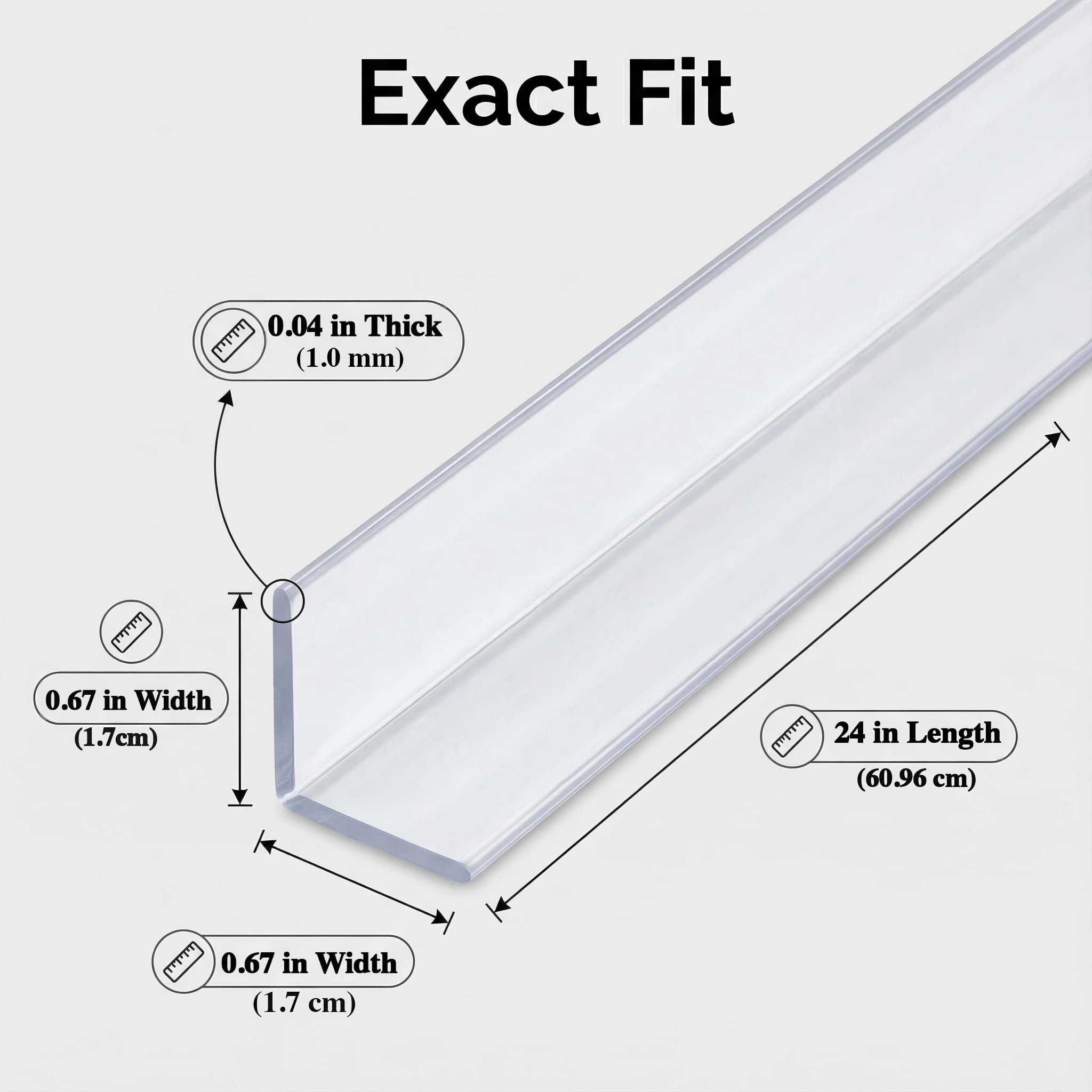 Package Includes:5PCS Clear Corner Protectors, 24” L x 0.67” W, 1.0mm Slim Thickness – Perfect for Baby Proofing & Furniture Safety