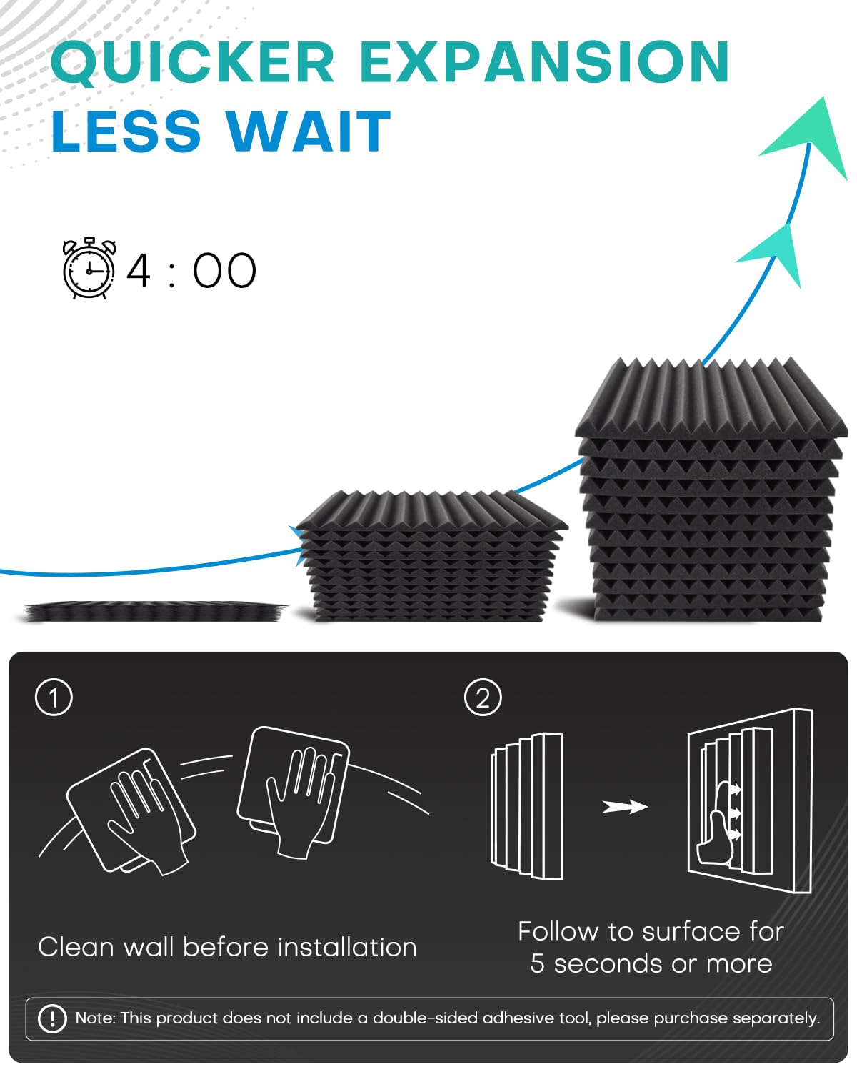 ODOR FREE & COST EFFECTIVE OPTION – Our 1 inch cost effective noise cancelling foam panels are better suited for large areas of the studio and are non-toxic and odor free to affect your work. PLEASE NOTE: This product does not include a double-sided adhesive tool, please purchase separately.