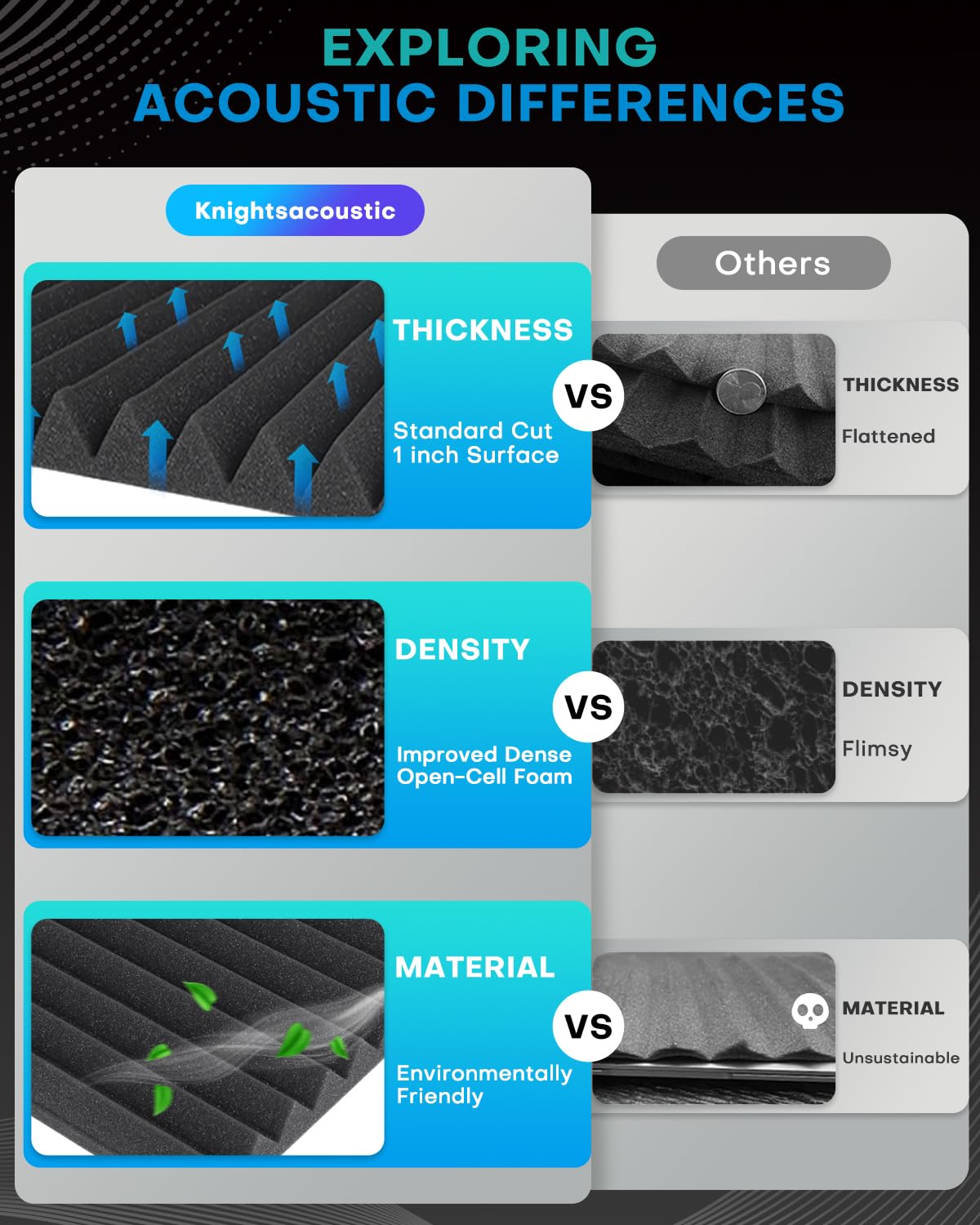 QUALITY – Our high density soundproof wall panels, despite being only 1 inch thick, is expertly crafted using professional machinery and skilled techniques. It undergoes a series of innovative high temperature processes, resulting in unparalleled elasticity and resilience, greatly enhancing durability and lifespan. You can expect the best sound management performance without compromising on quality.