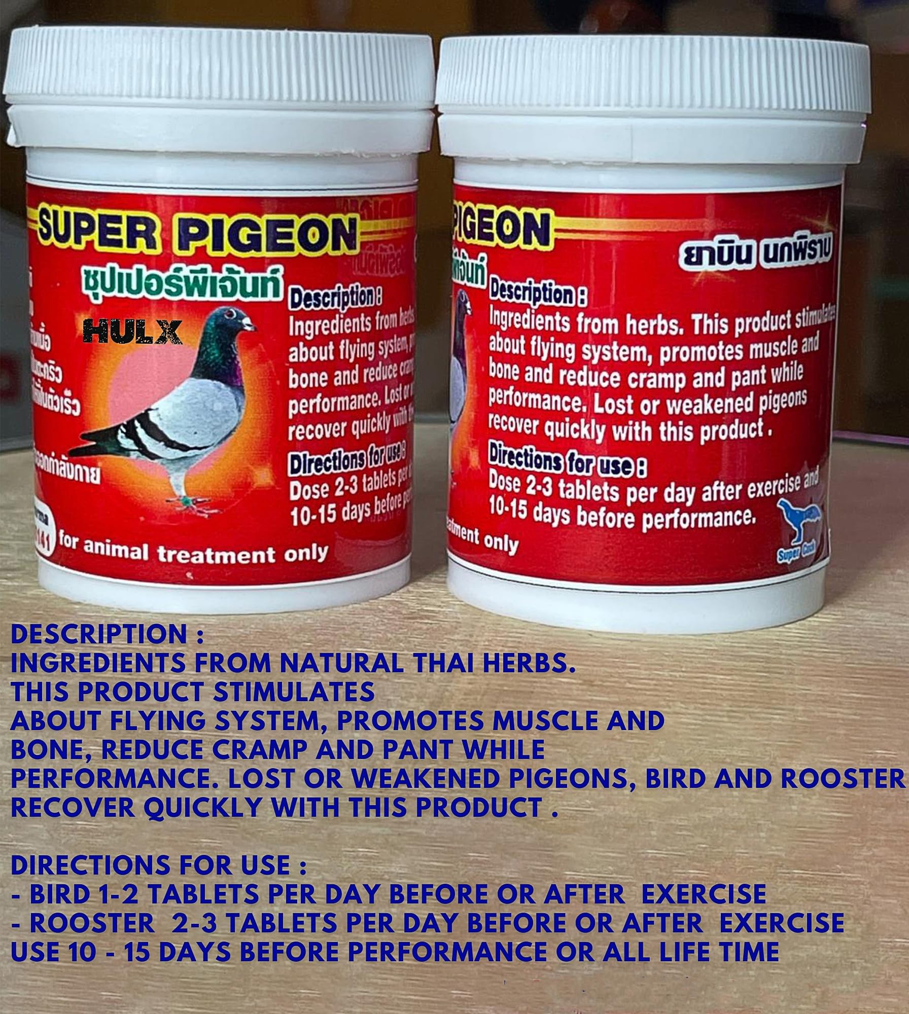 Hulx Present - Super Pigeon - 100 Tablets - Faster Result - Vitamin Based Bird & Rooster Health Supplement - Fast results in 7 day, best vitamins booster for all kinds bird, intensive care rich in more than vitamins plus herbal nourishment use during the collision helps 100% strengthen immunity, helps to strengthen freshness, good flying, no falling, flapping, good breeding.