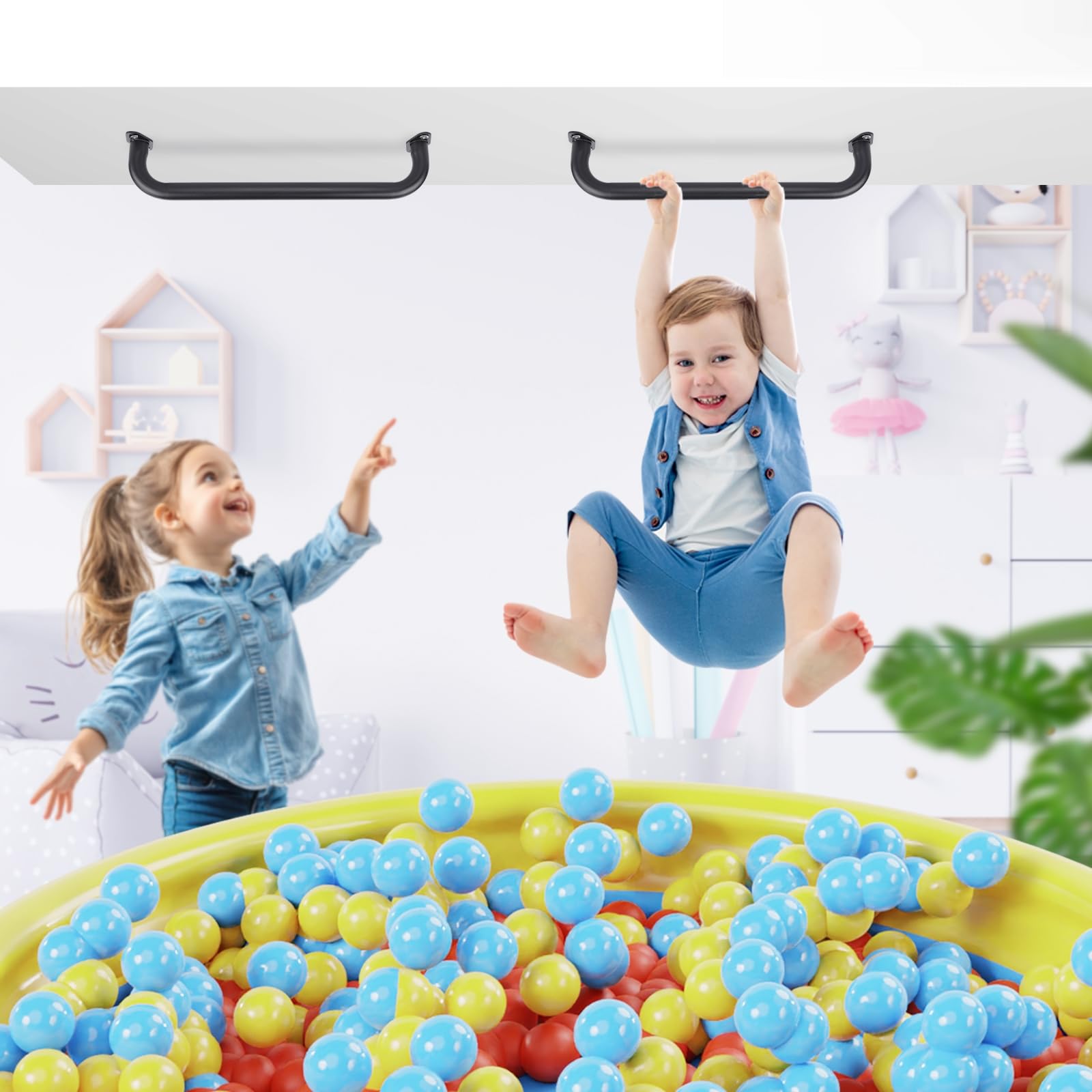 Sturdy monkey bars indoor kit:The playground handles is made of fully welded steel pipe with heavy-duty steel pipe and 4mm thick metal plate.The surface is coated with matte black powder, featuring anti-rust, anti-slip and anti-fading properties.The metal handle has two installation holes at each end of the metal plate for installation. It is more stable than a single installation hole.
