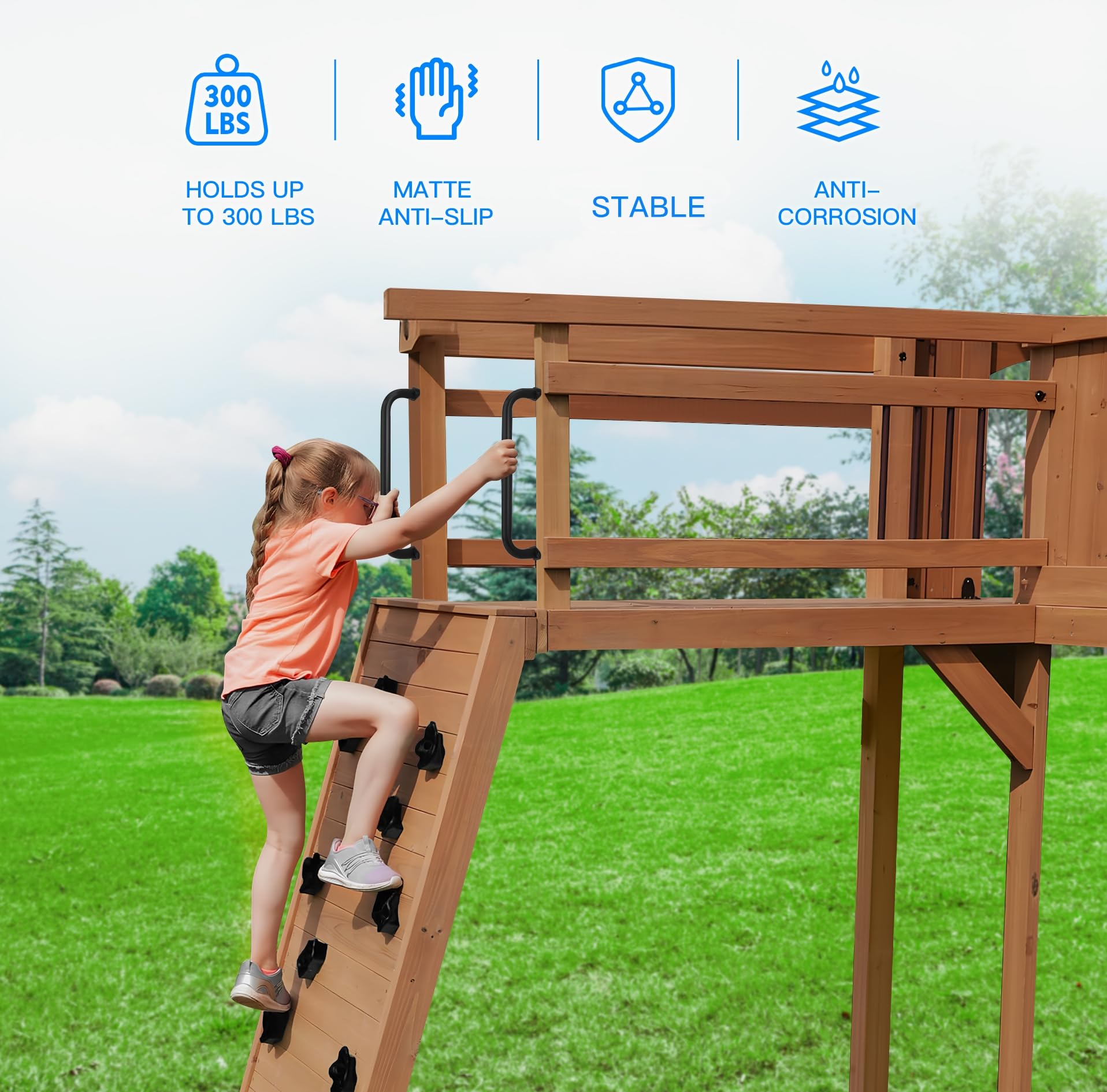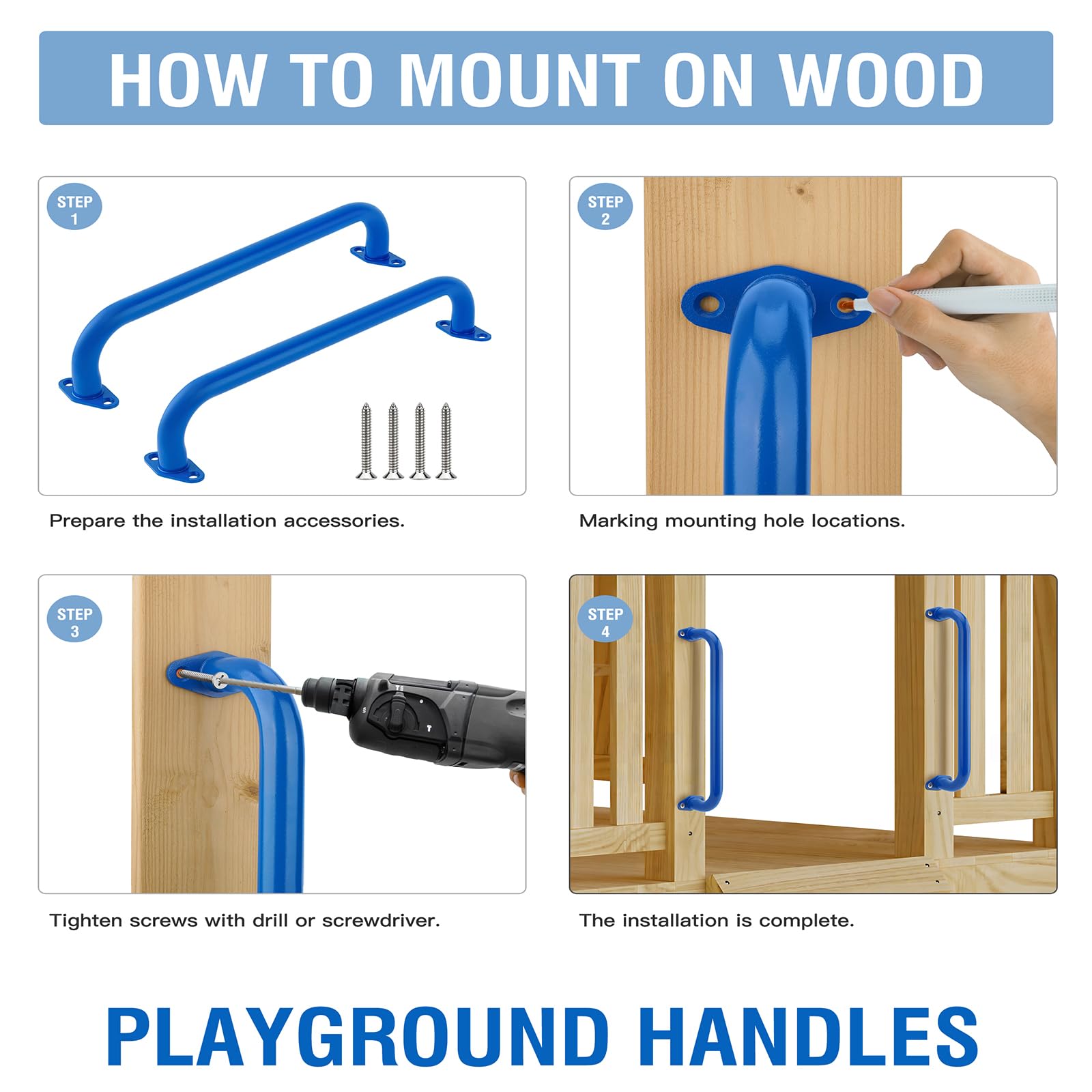 Easy and quick installation:The package includes 4 playground handles,16 expansion tubes for threshing and 16 stainless steel wood installation screws, which can be directly installed onto wooden columns or solid walls with a drill bit. (Note: For special hardwood and solid walls, please drill pilot holes with a drill bit first)