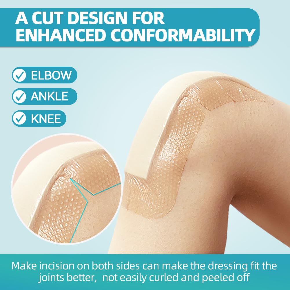 Designed for joint wounds - such as elbow, ankle, knee. Make incision on both sides can make the dressing fit the joints better, not easily curled and peeled off