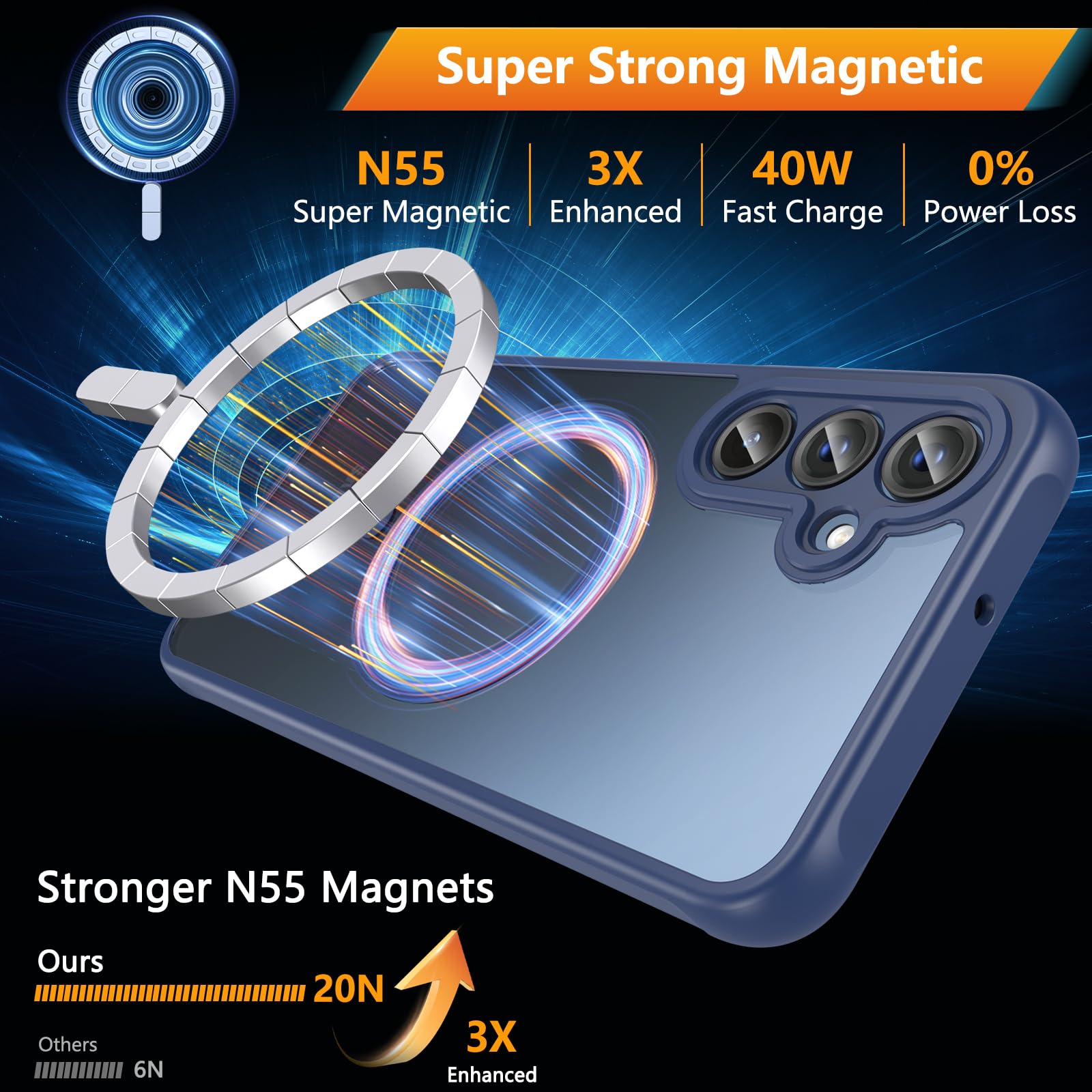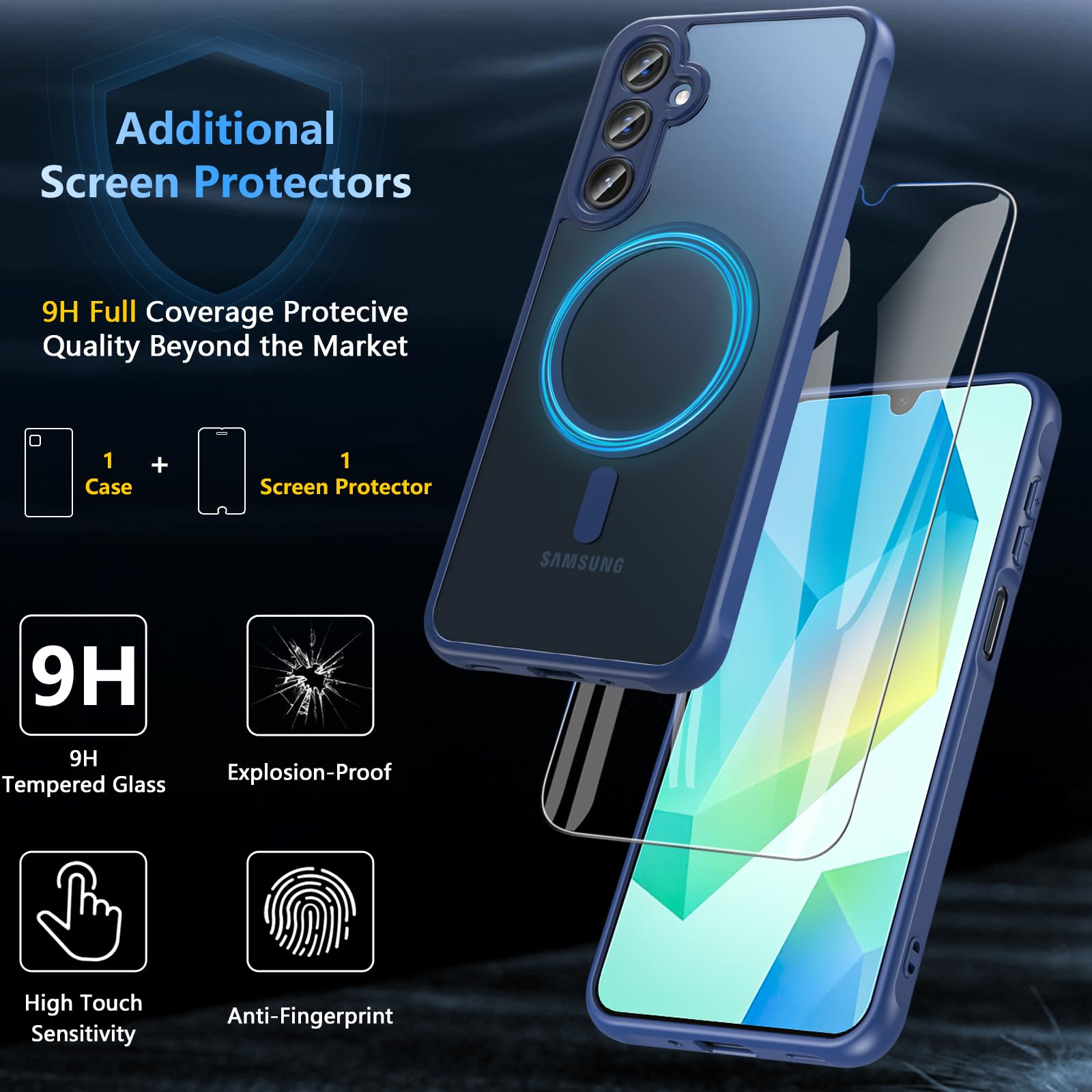 【Powerful Magnetic Attraction】Hensinple magnetic case for Galaxy A16 5G/4G phone case with tempered glass screen protector. Engineered with ultra-strong N52-grade permanent magnets, the Samsung Galaxy A16 5G/4G case offers superior magnetic attraction, ensuring your phone stays firmly attached in all situations. The powerful magnetic force provides enhanced stability, bringing more comfort to your life.