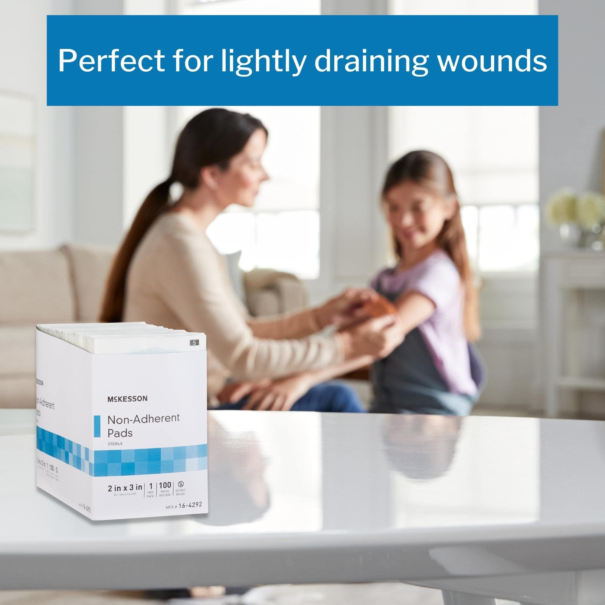 Absorbent dressing pads for lightly draining wounds; can be used in combination with other wound care supplies to help protect the wound from debris and infection