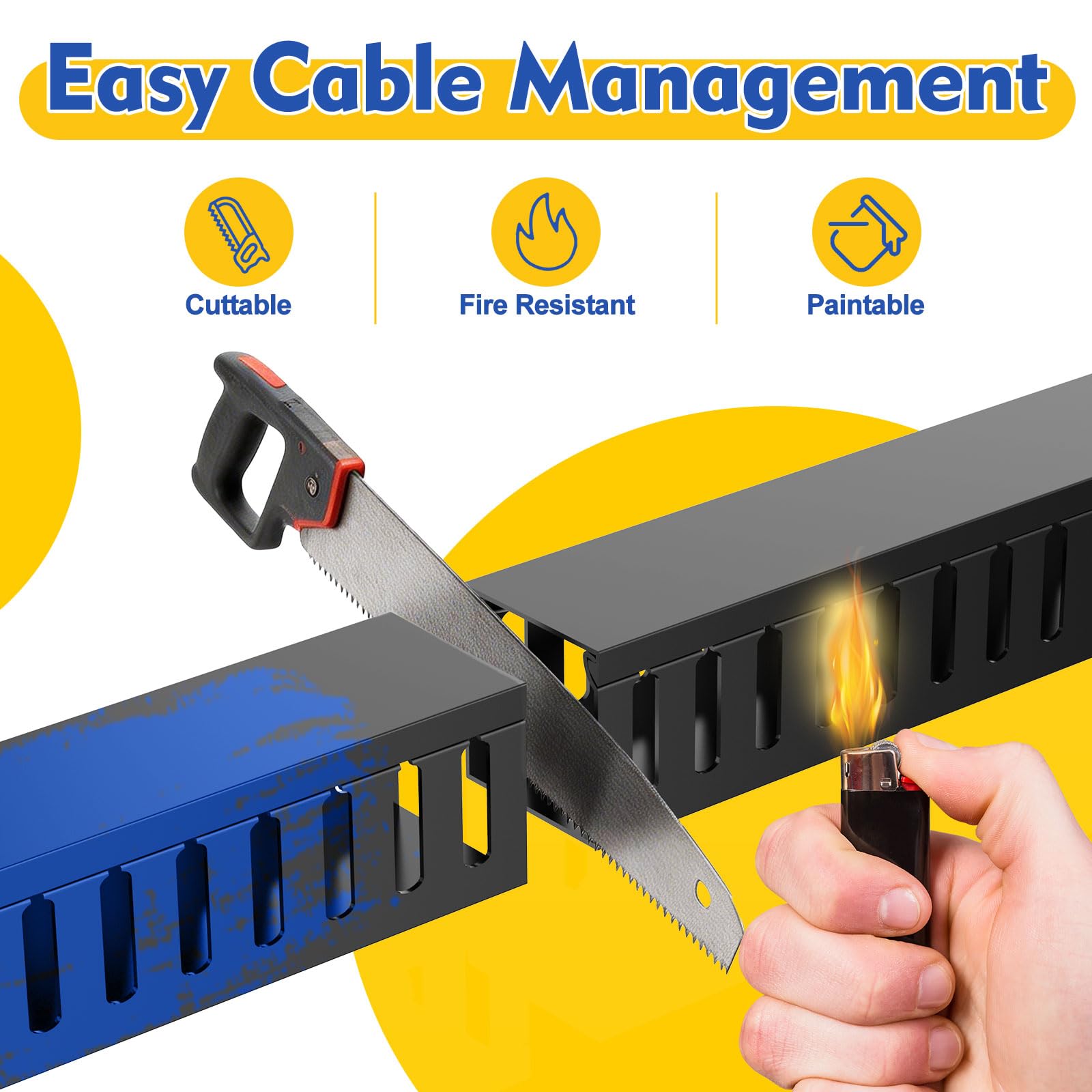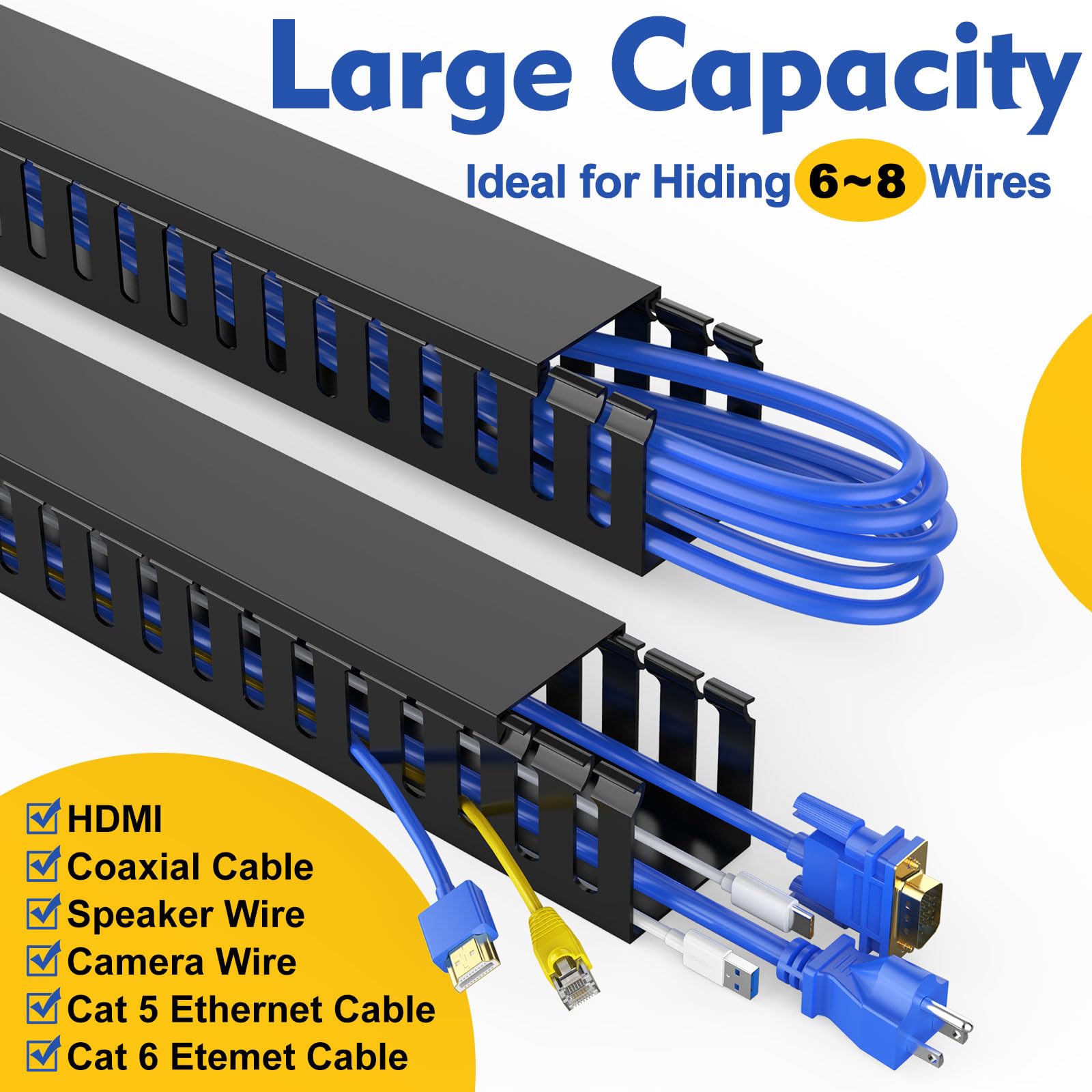 CABLE RACEWAY KIT : One-piece cable channel is a great accessory to hide and conceal clutter cables and cords under desk. Perfect for home entertainment system cables, TV wires and computer cords. Save space and keep home neat, protect your family and pets from unsafe cables