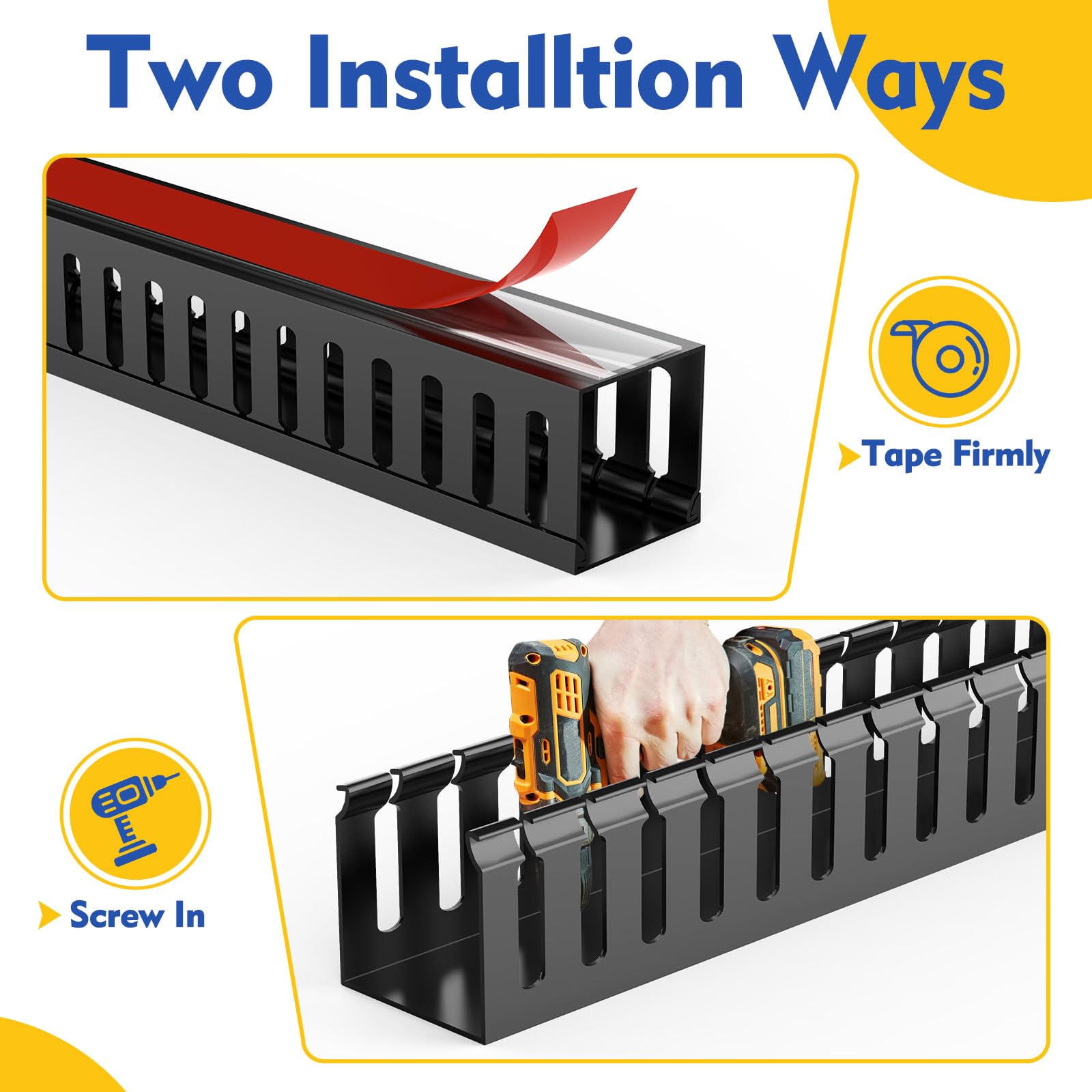 TWO QUICK INSTALLATION METHOD : Easy and simple to use. The wire raceway duct has multiple openings to let cables go in and out of the channel freely. Just stick the cord cover and put in on the wall or on the back of the desk. Then align the holes and slide the cover on. You can use the screws if you want to keep channel firmly on the wall