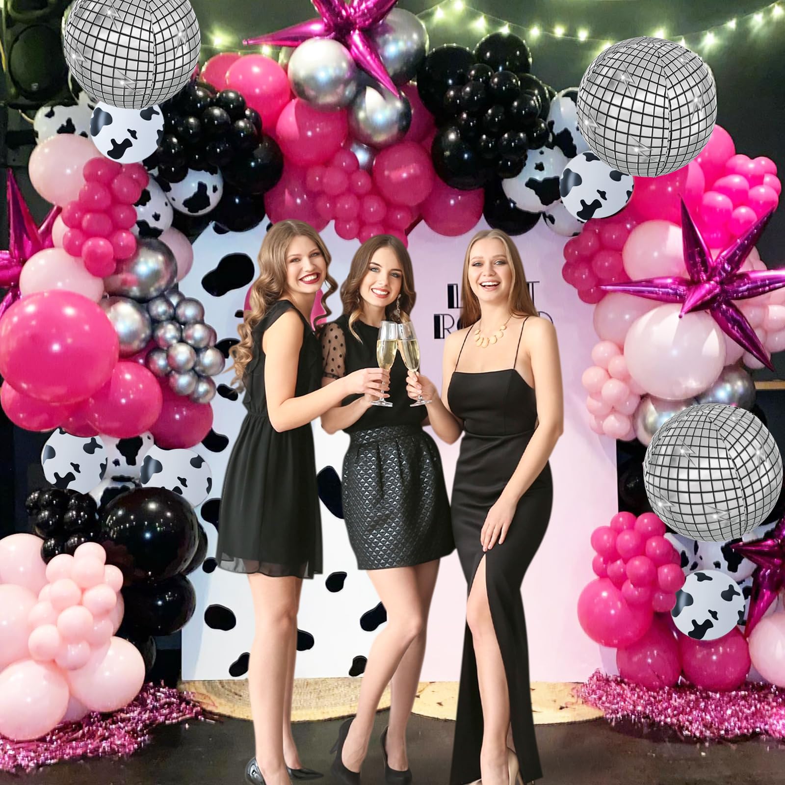 Package Include: The cow balloons include 12inch cow print balloonsx60, glue dotsx20, white ribbonx1
