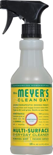 Mrs. Meyer's Clean Day Multi-Surface Everyday Cleaners feature hard-working yet gentle multi purpose cleaning agents, while also providing a special, singular scent for your entire home. Honeysuckle blossoms fill the air with tempting sweet scent - a charming mix of flowers and fruits. So serene and sunny! We combine garden inspired scents, essential oils, and plant-derived multi purpose cleaning ingredients to clean kitchen messes and all over the house. Our cleaning spray is great on all non-porous surfaces such as finished wood and tile floors, countertops, walls, porcelain, bathroom fixtures, sealed natural and synthetic stone, and more. Available in other garden inspired scents and biodegradable products such as dish soaps and laundry detergents! Mrs. Meyer's - rooted in goodness.