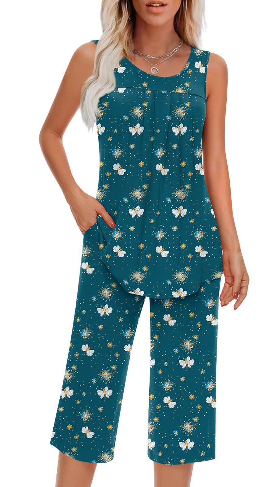 Occasion: This lightweight and comfortable women's summer sleeveless set can be used in various occasions. You can wear it as home clothes to sleep or cook; You can also wear it to go out for a dog walk or morning run, of course, this is also a good set for doing yoga exercises