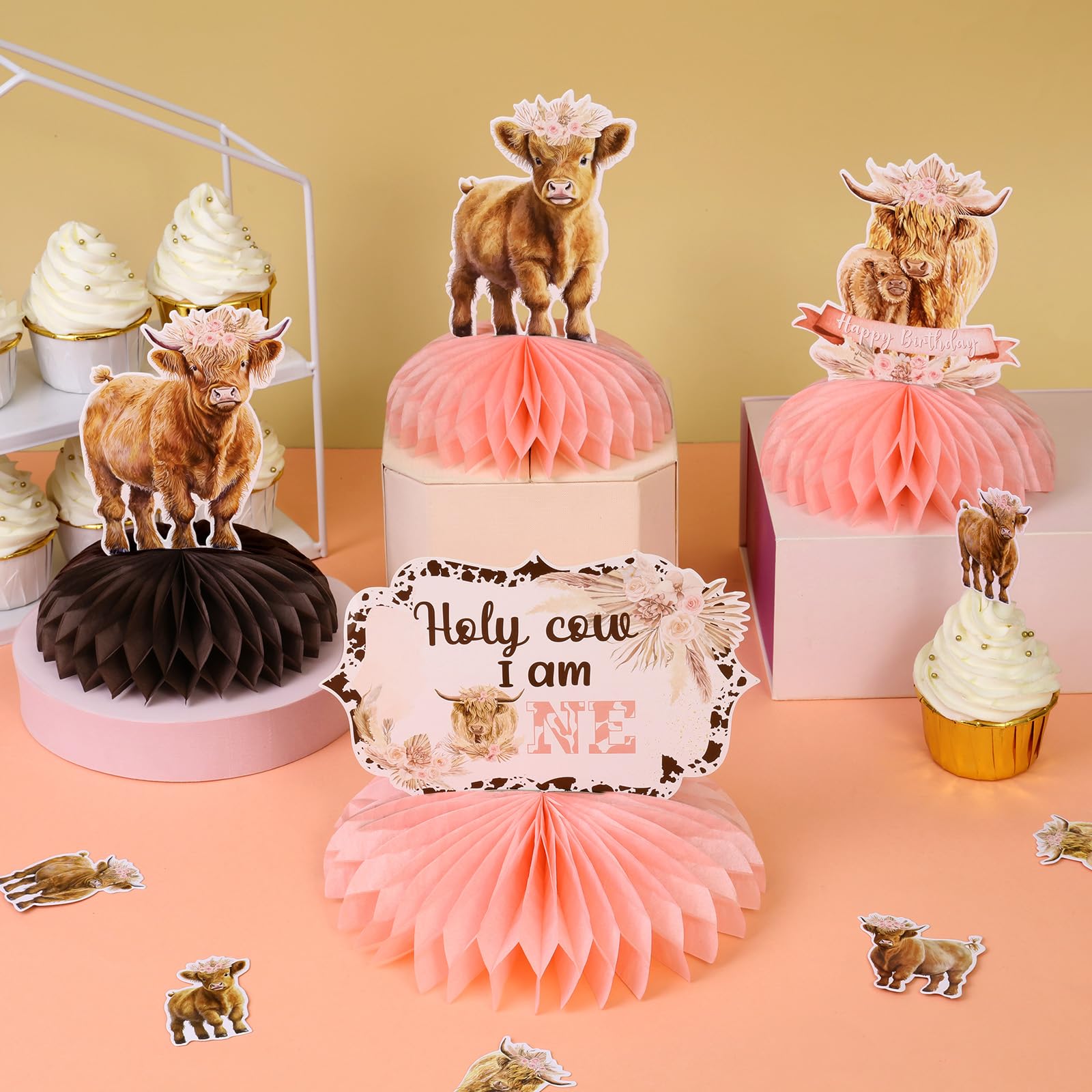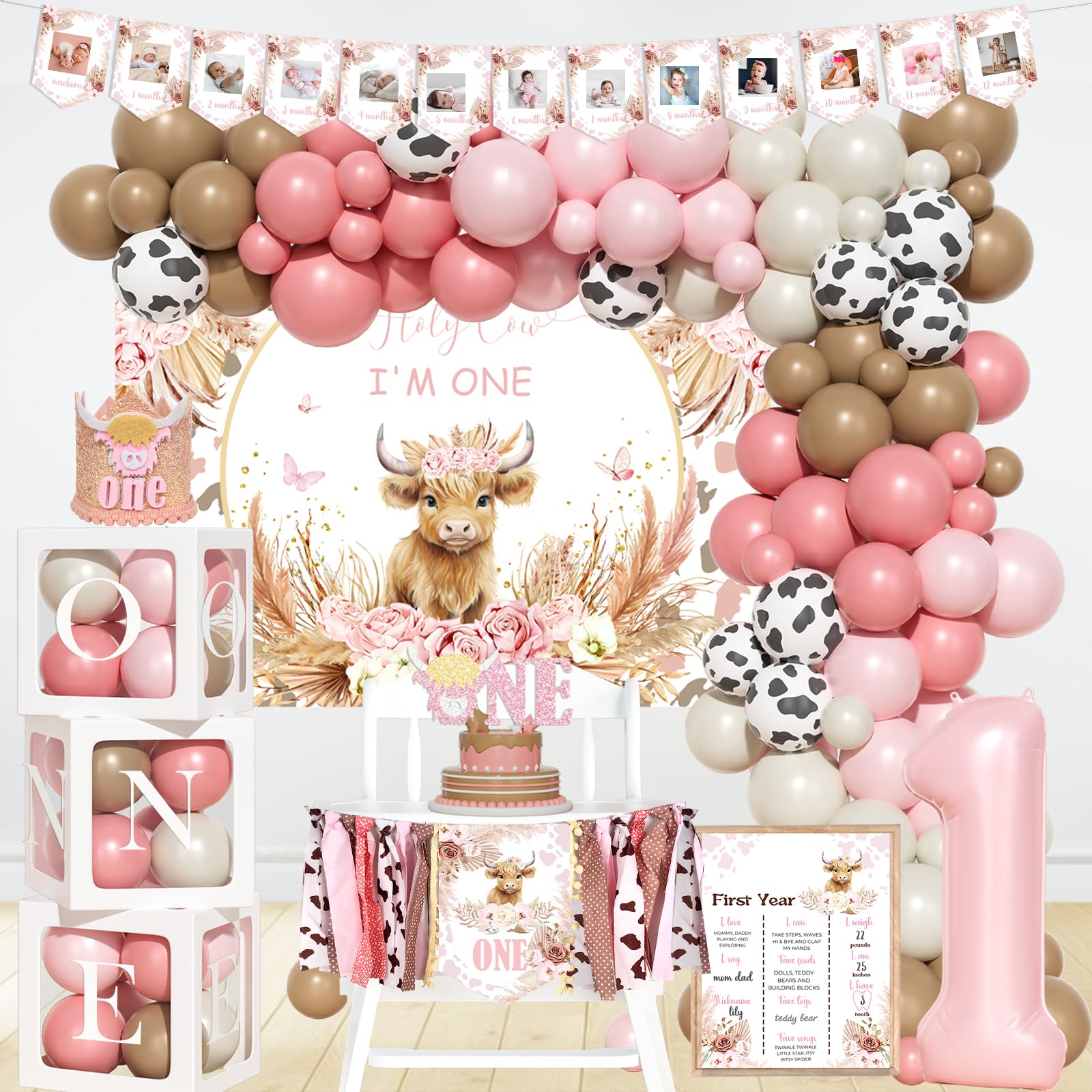 Highland Cow 1st Birthday Decorations Girl: Highland cattle birthday decorations set is perfect for girls' 1st birthday party and other theme event, like boho theme party, farm cow theme party, holy cow theme party, pampas grass theme party, western cow theme party, etc.
