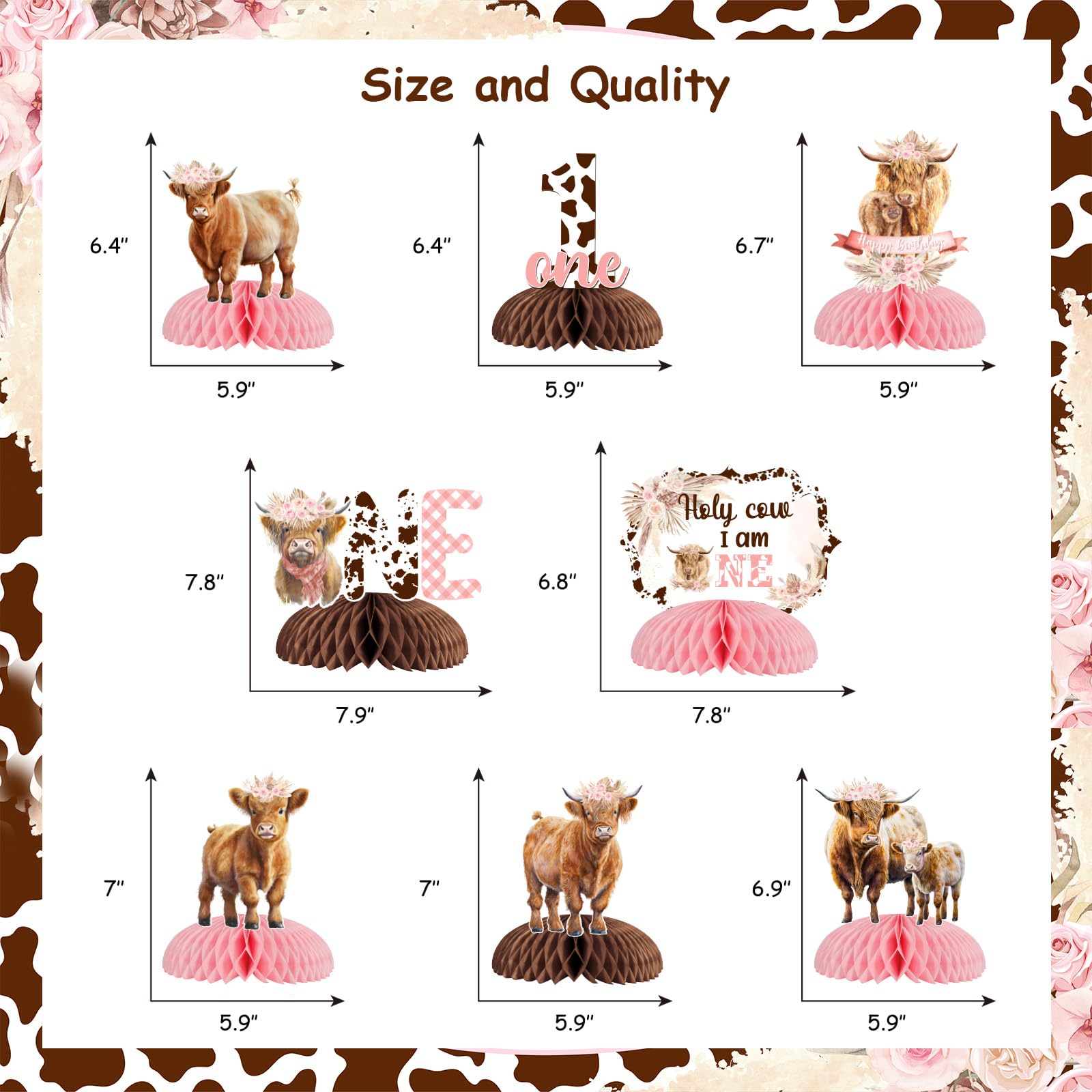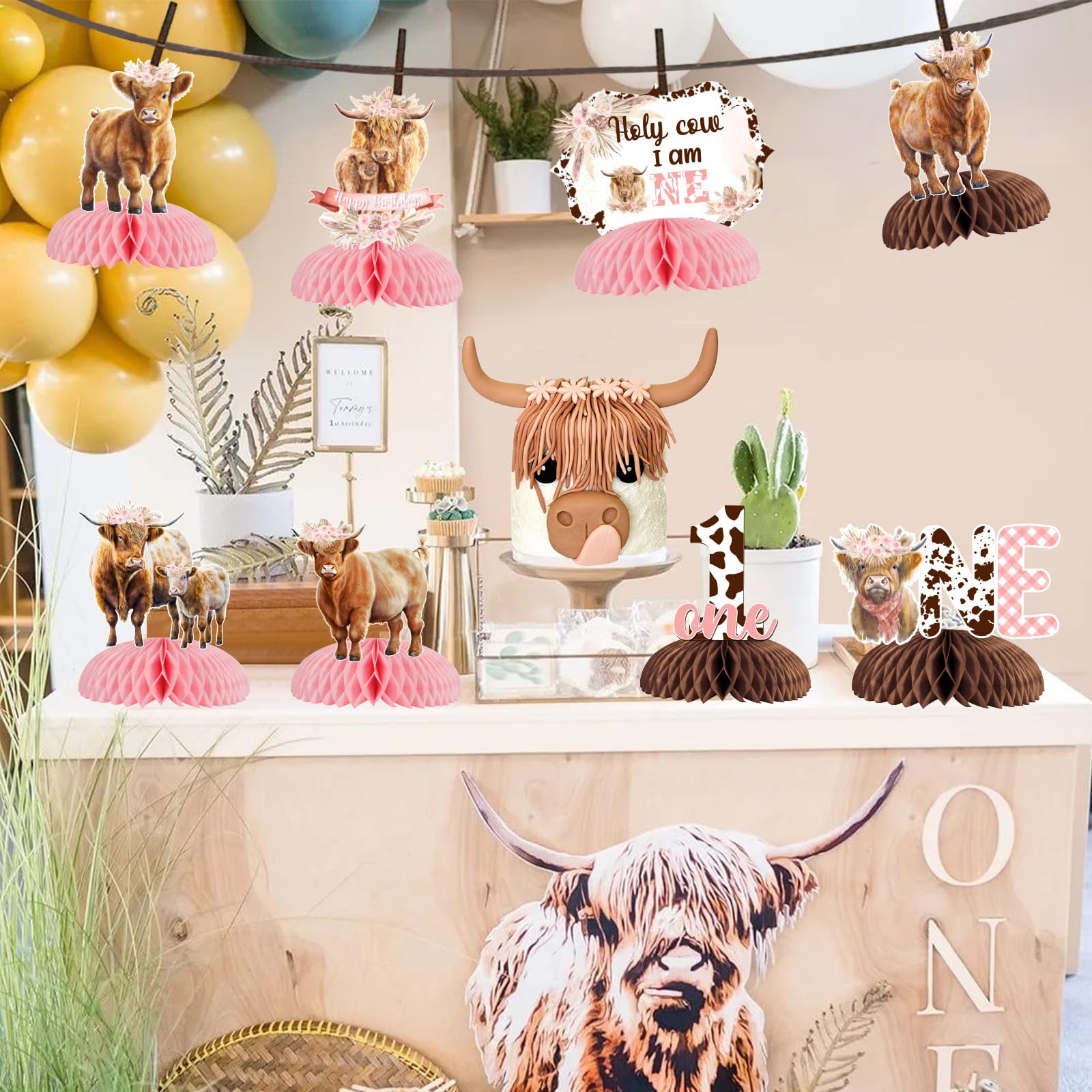 Highland Cow Honeycomb Centerpieces: You will get 8 pieces of highland cow honeycomb centerpieces in 8 different styles, adequate quantity and styles to satisfy your daily or party decorations demands.