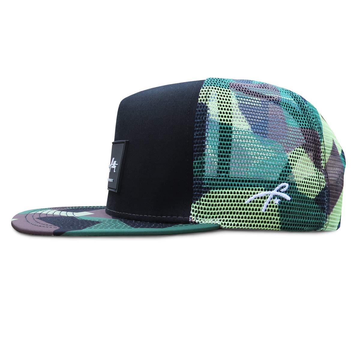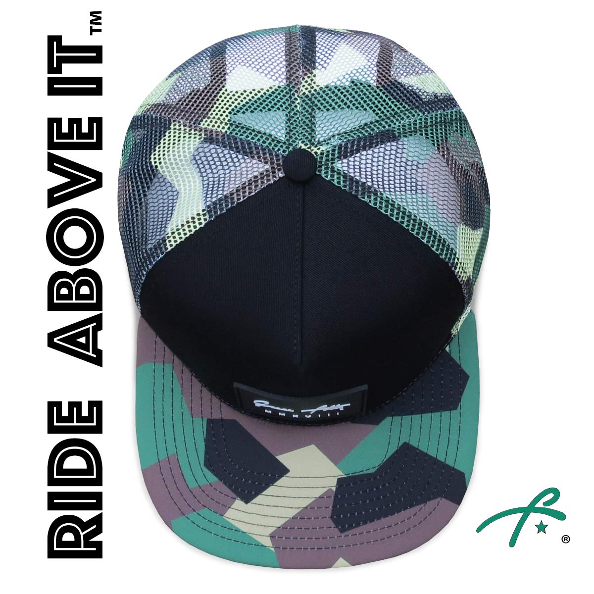 SMOOTH TRUCKER- This Modern Camo Grace Folly flat bill trucker hat is sure to impress! Structured 5 panel trucker cap with mesh back and adjustable snapback. Be the envy of your friends in this old school trucker.