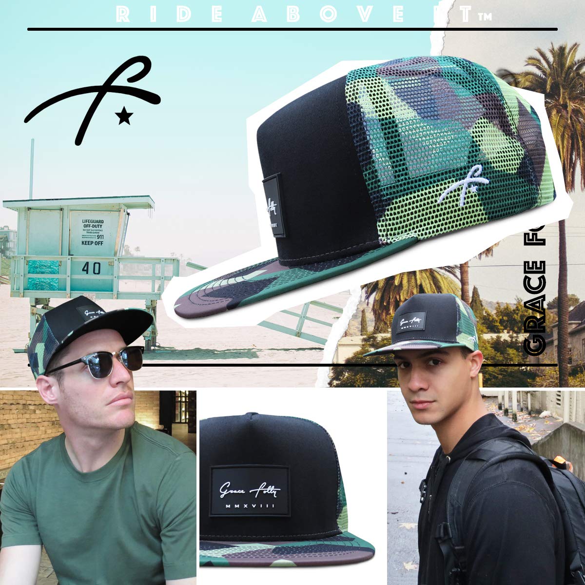 Description WHY BUY A GRACE FOLLY TRUCKER HAT?: Make a Fashion Statement! This trucker hat by Grace Folly is a real crowd pleaser! Look dope and show off your unique style in this baseball trucker cap (note- a trucker hat is also known by other names such as a “netback hat”, “gimme hat”, or “feed cap”). Get compliments from family, friends, and random strangers! Express yourself! You are what you wear! Quality Features: High quality materials and workmanship have gone into building our hats. This includes the flat bill, panels, mesh back, silicon patch, snapback, embroidery, and printing. You may find a cheaper hat but it will be inferior. Spend a few dollars more to get this high quality cap that will look awesome even after years of wear! You get what you pay for baby! Look Cool Anywhere! Whether its chilling at the beach in California, skating down the street, going for a surf, or going fishing then we got your backside covered! You will look dope whether inside or outdoors! Our trucker baseball hats come in an array of styles from plain designs to various unique printed designs. Stand out from other truckers on the market! Adjustable Snapback: Our fitted trucker hats are mid profile and have an adjustable snap back so they fit nearly everyone from Teens and Women to Men who wear XL trucker hats. Boom!! Love our Lids: We are so confident you will love our lids so grab this stylish new trucker hat today. Why not consider picking up and extra one or two? Start getting compliments from your new to be favorite hat!