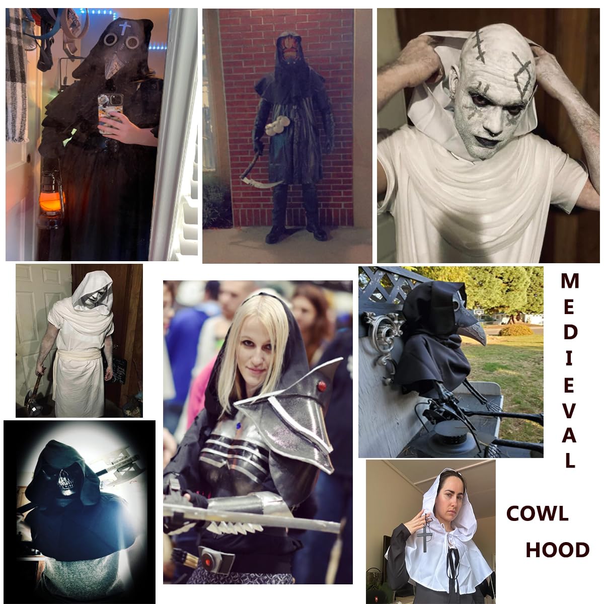 Description Includes: 1 hooded cowl and 1 cross necklacePlease note the real color of the item may be slightly different from the pictures due to the brightness of monitor and light brightness.