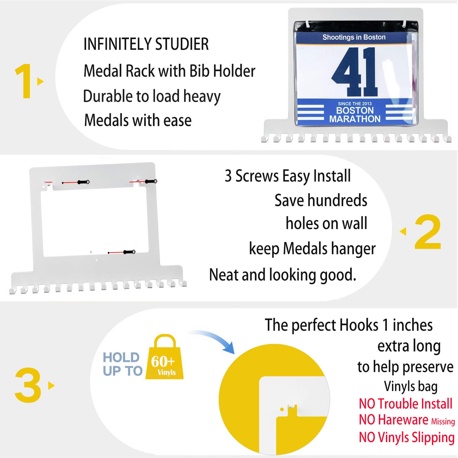 ✨【TOP QUALITY MATERIAL】①race medal holder wall hanger made out of the Sturdy metal with outstanding matrial from bending,breaking and scratch compared with iron Steel. ②Our marathon medal display will not bend or break over time.Much stabler,sturdier and durable than others, runner medal hanger display protects and displays your medals and trophy from marathons,triathlons 5k and other athletic competition③Upgraded Vinyls Hooks of running medal display with light but sturdy construction
