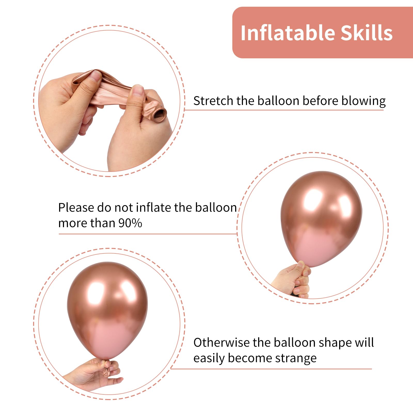 PREMIUM QUALITY: The rose gold balloons are made of premium quality latex, which are sustained. Latex balloons can be filled with air and helium. Please do not rub against overheated and sharp objects to avoid sudden popping.