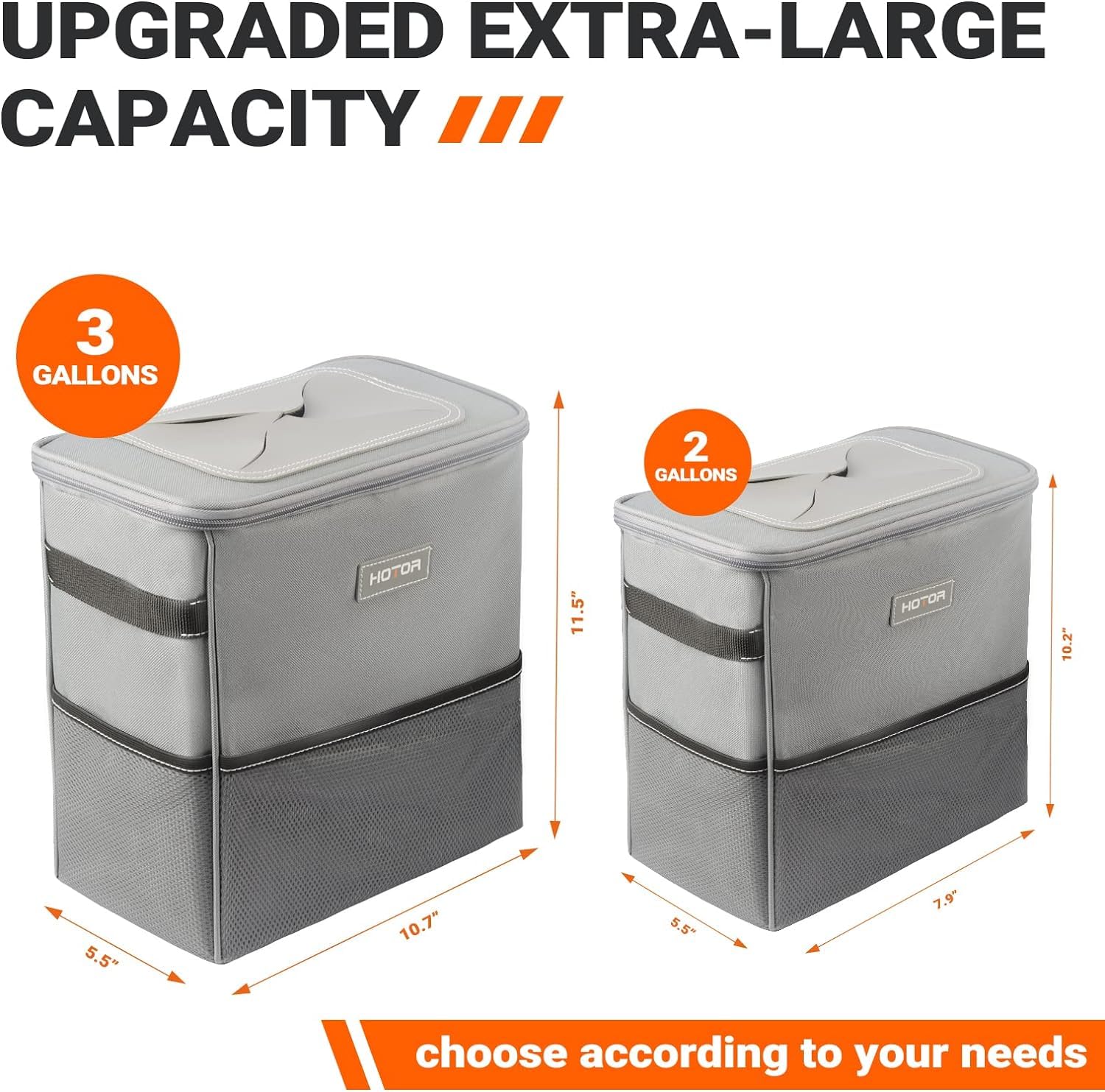 LARGE CAPACITY: Measuring 11.5 * 10.7 * 5.5 inches, HOTOR car garbage can is 1.5 times larger than many of its counterparts with its large capacity of up to 3 gallons. It serves as not only a trash bin for peels, tissues, bottles, wasted wrappers, and leftover snacks, but a practical organizer for car accessories such as clothes, towels, toys, keys, magazines, and snacks. Time for tidying!