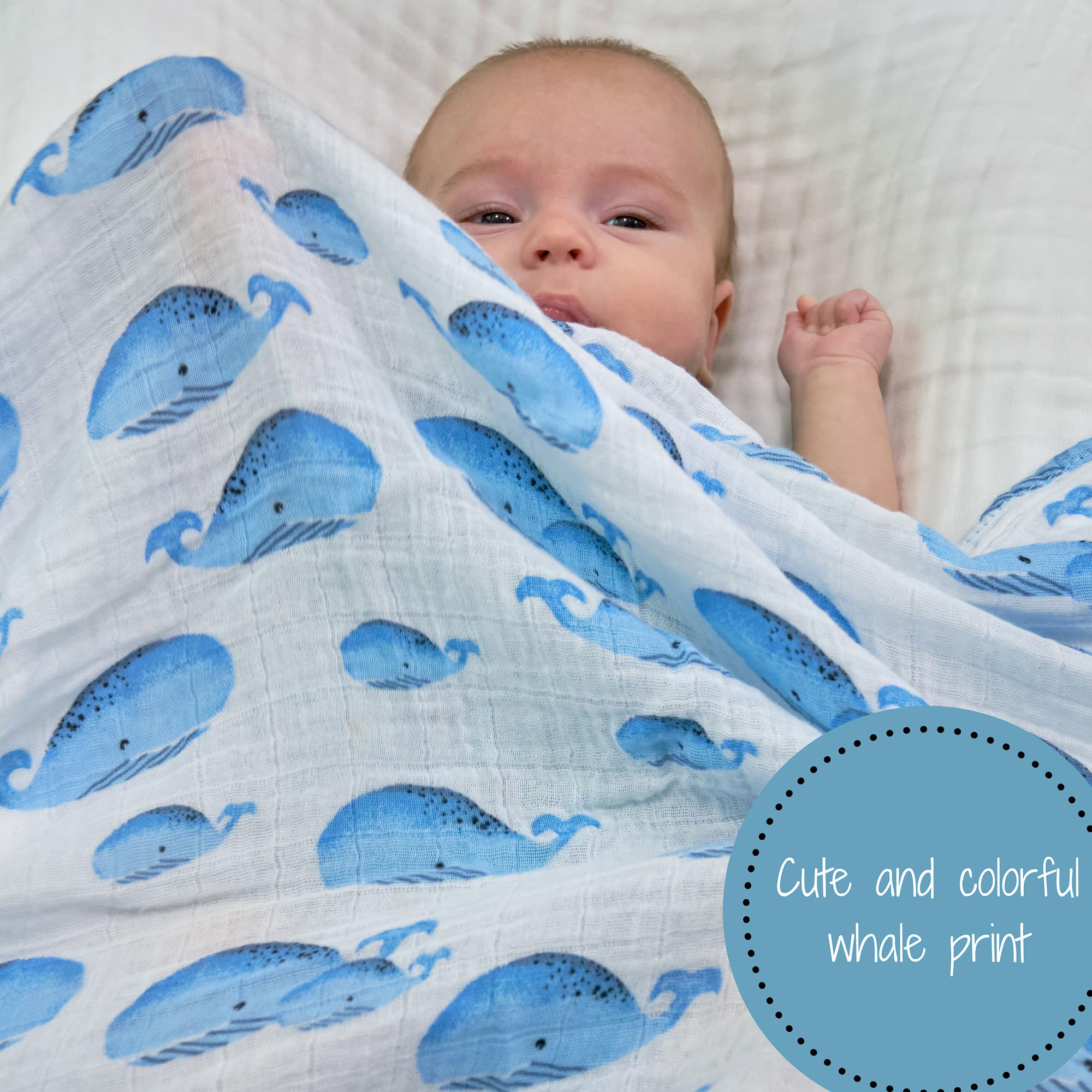 FUN WHALE PRINT - This charming whale swaddle is a perfect addition to a nautical-themed nursery for your baby boy. Its delightful design brings the magic of the sea to life, making it an ideal baby shower or welcome gift. Moms and dads will love this playful touch to their baby’s essentials