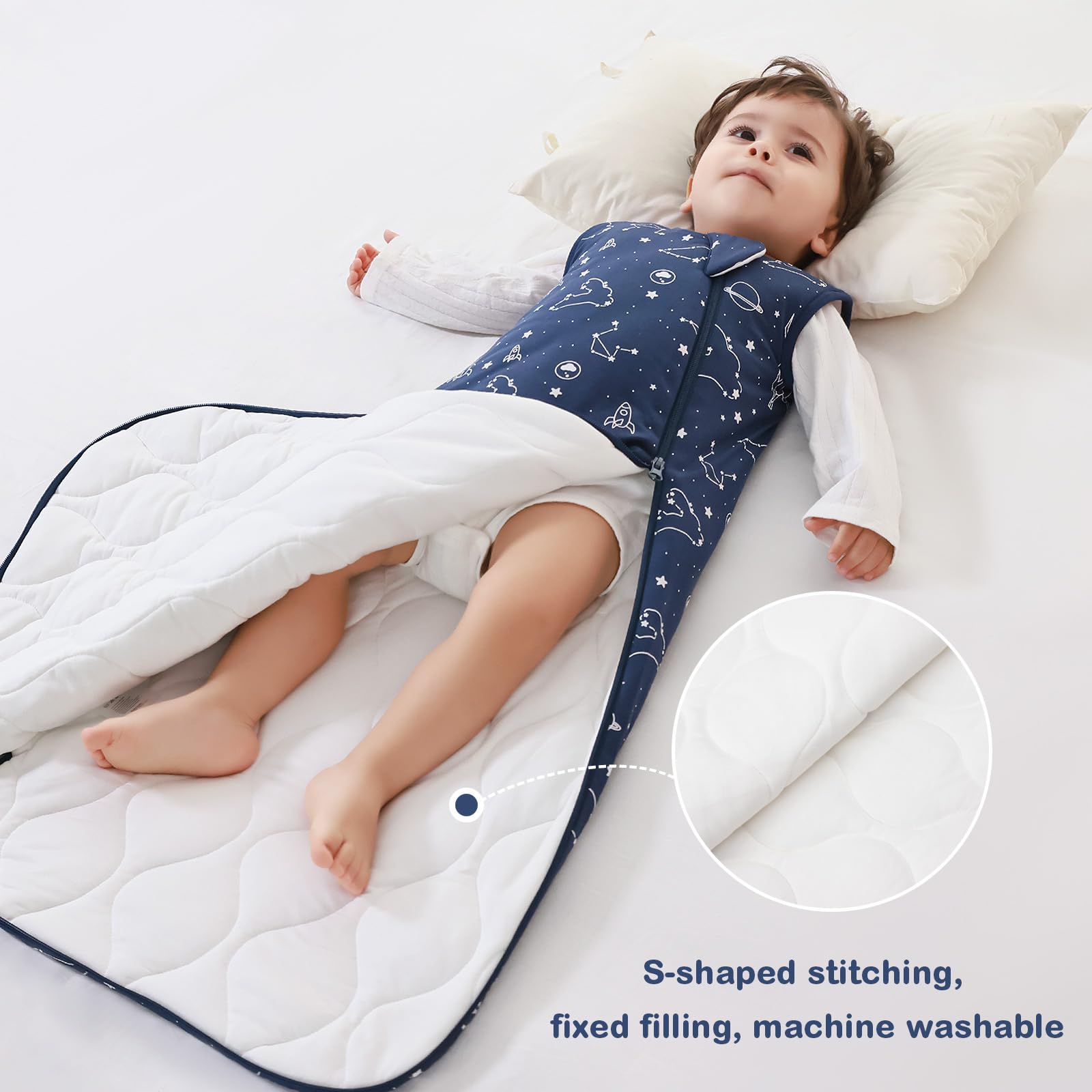 【Soft&Breathable】Our baby sleep sack outer is supersoft, contains 95% rayon made from bamboo and 5% spandex.This fabric is famous for its buttery softness and silky smoothness.