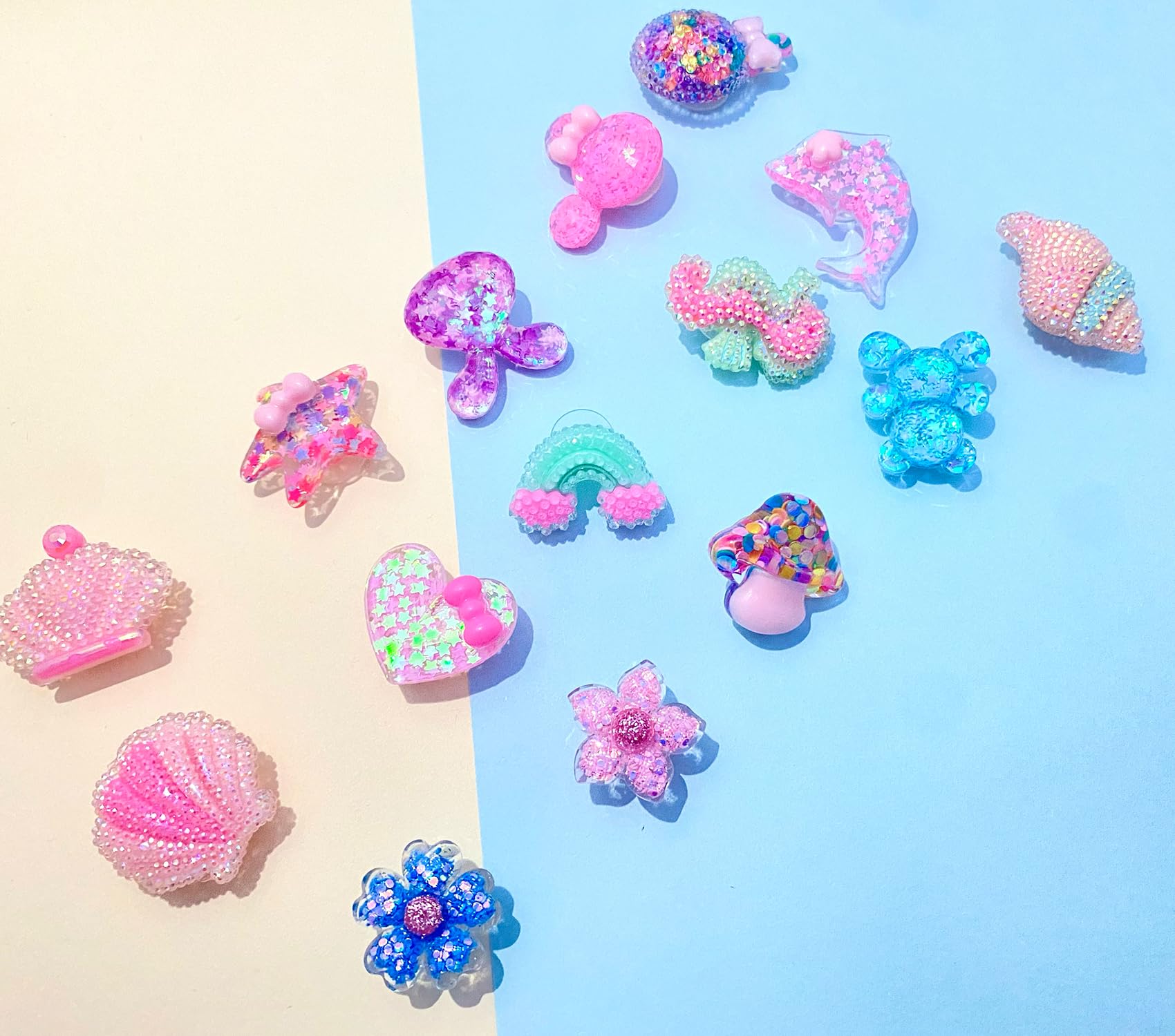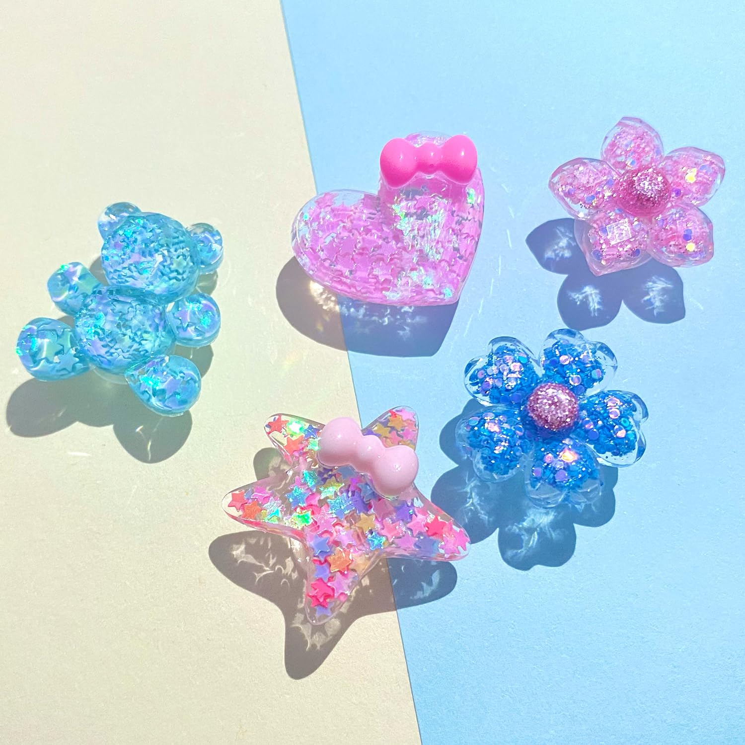 Instant Glamour: Watch them sparkle! Our Sparkly charms feature brilliant glitter that catches the light, adding a dazzling touch to any pair of clogs, sandals and other shoes.