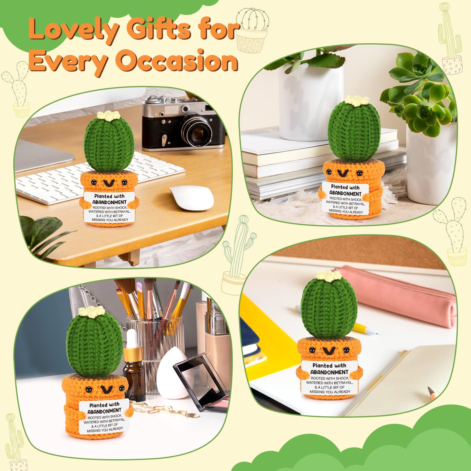 Handmade Crochet Cactus: Small cactus doll knitted from yarn, with a soft and comfortable touch; giving emotional active support and positive energy. Our emotional Cactus support makes for an ideal present for your on various occasions, be it their off to college, Birthday, Retirement, Promotion, Valentines, Christmas, New Year, Graduation, White Elephant, Goodbye Party, Divorce, Heartbreak,Goodbye, Breakup and so on.